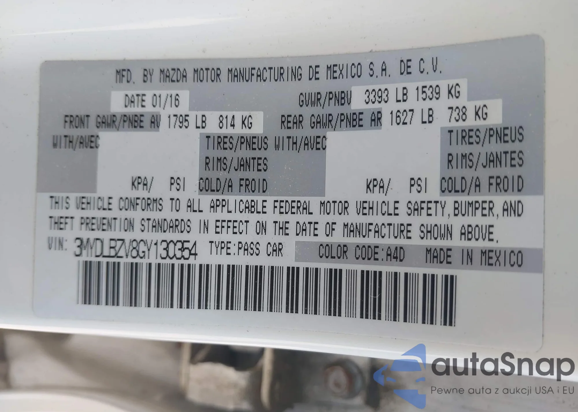 • VIN 3MYDLBZV8GY130354