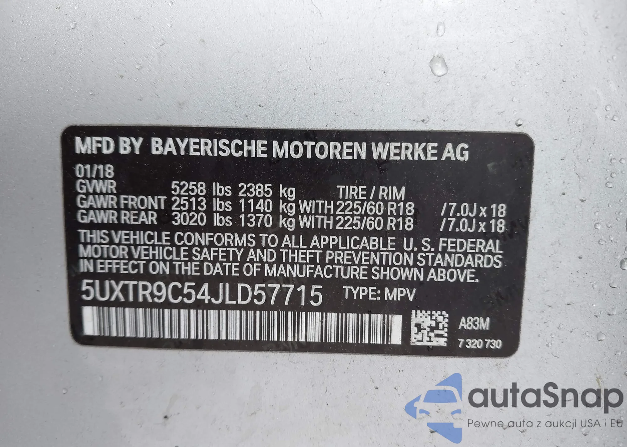 • VIN 5UXTR9C54JLD57715