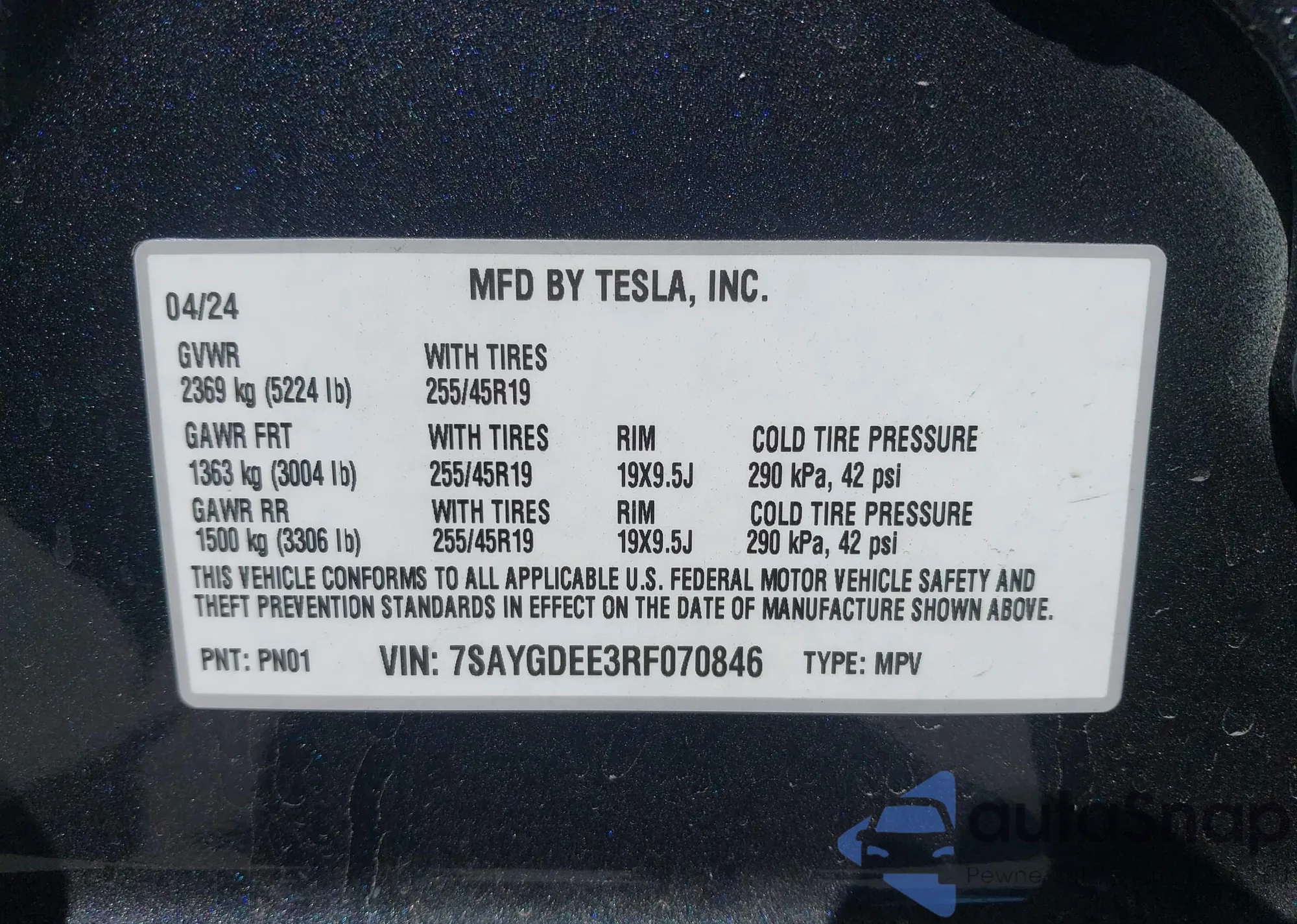LOT: 42279554 VIN: 7SAYGDEE3RF070846