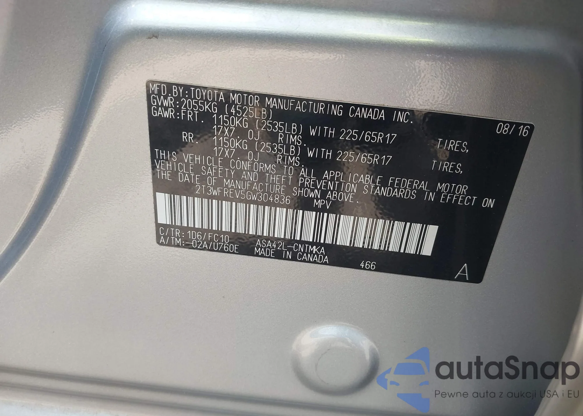 • VIN 2T3WFREV5GW304836