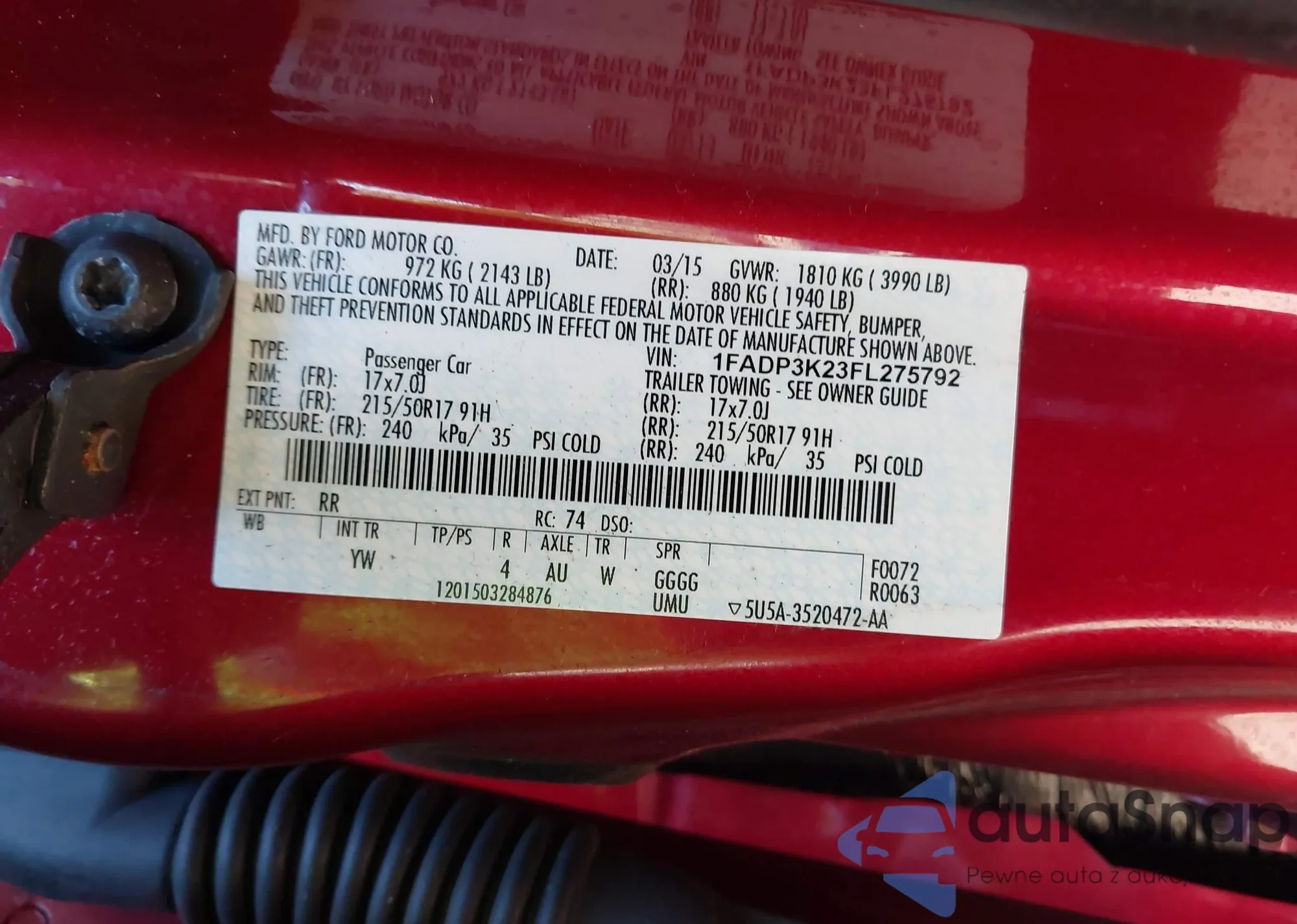 • VIN 1FADP3K23FL275792