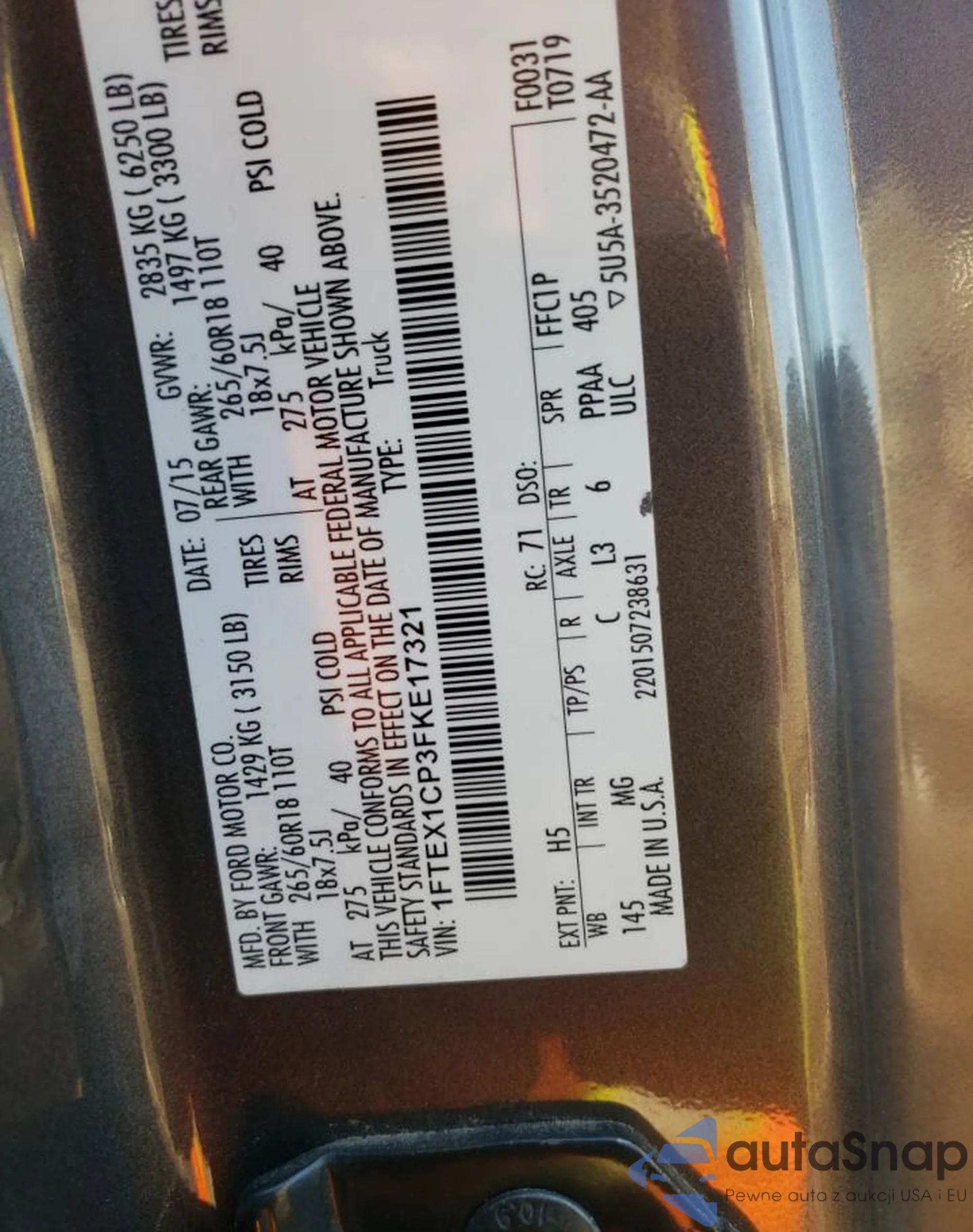 • VIN 1FTEX1CP3FKE17321