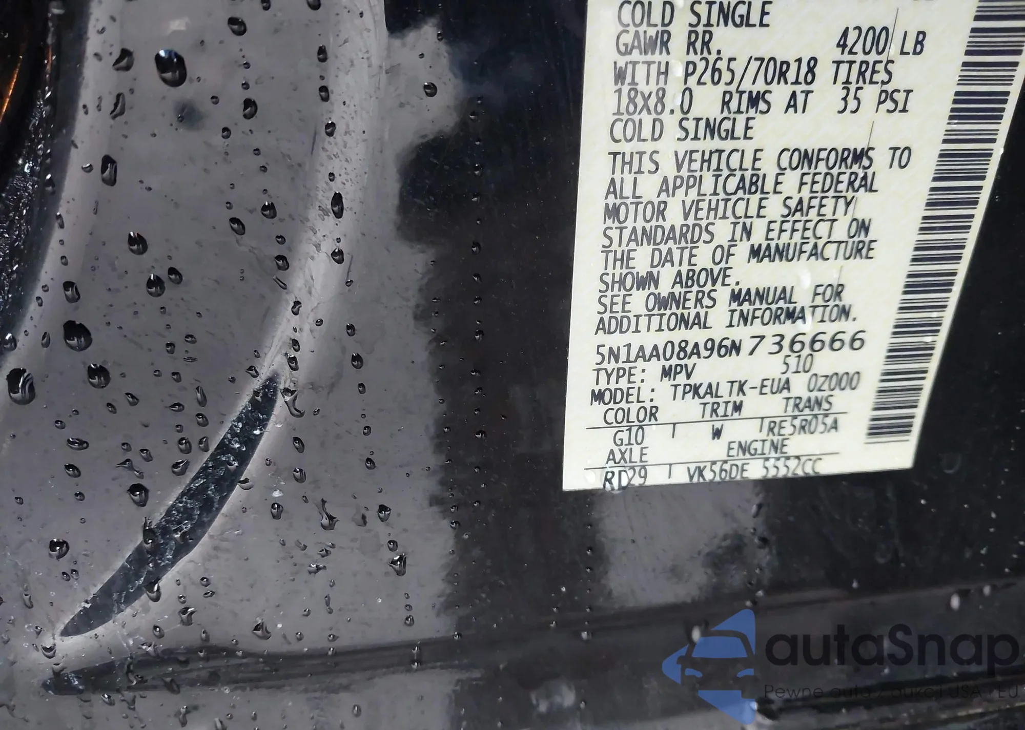 • VIN 5N1AA08A96N736666