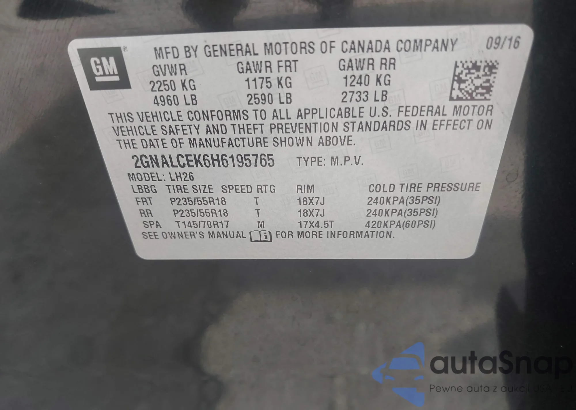 • VIN 2GNAXSEVXJ6250457