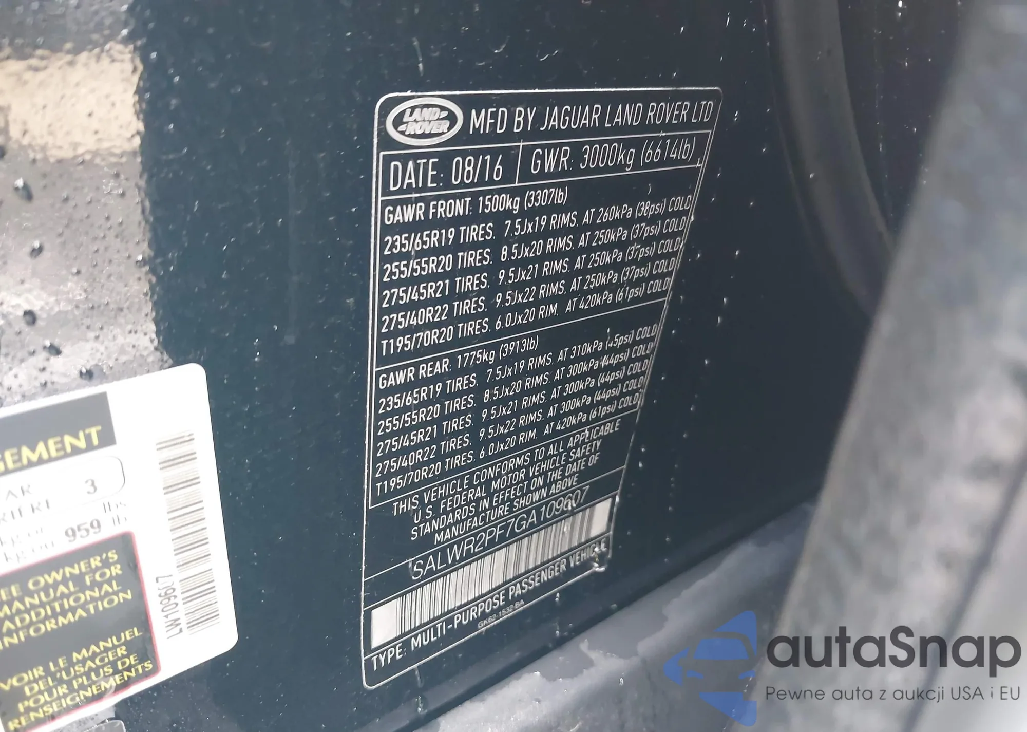 • VIN SALWR2PF7GA109607