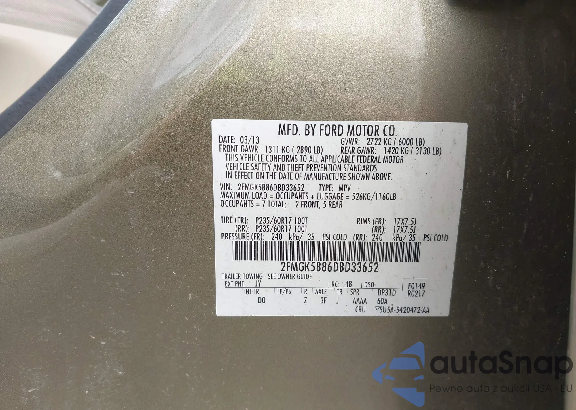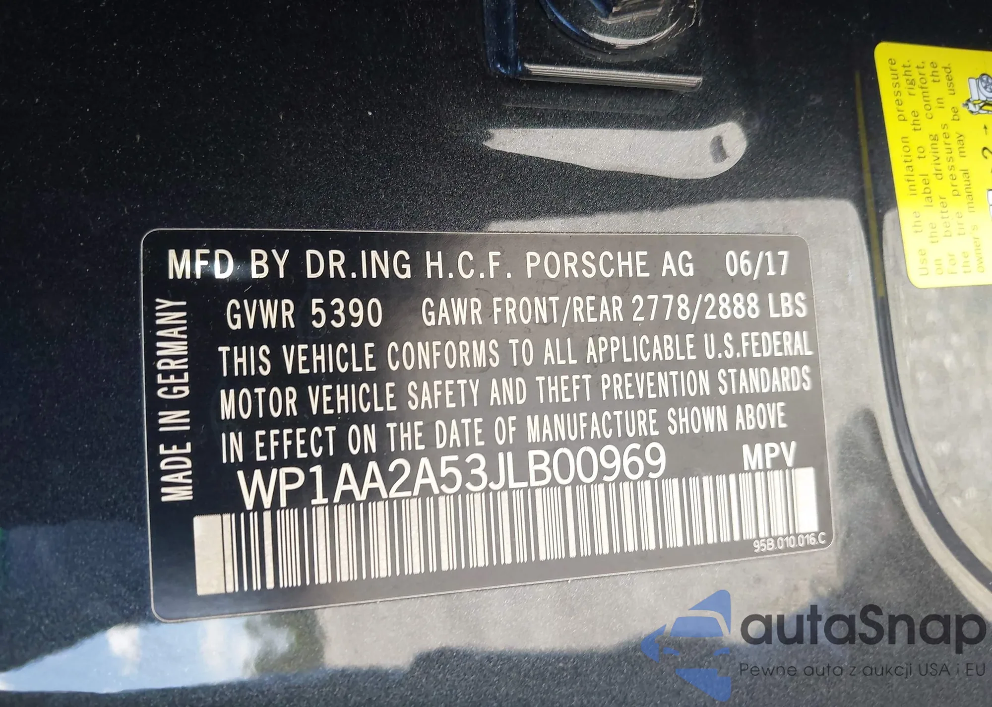 LOT: 42123476 VIN: WP1AA2A53JLB00969