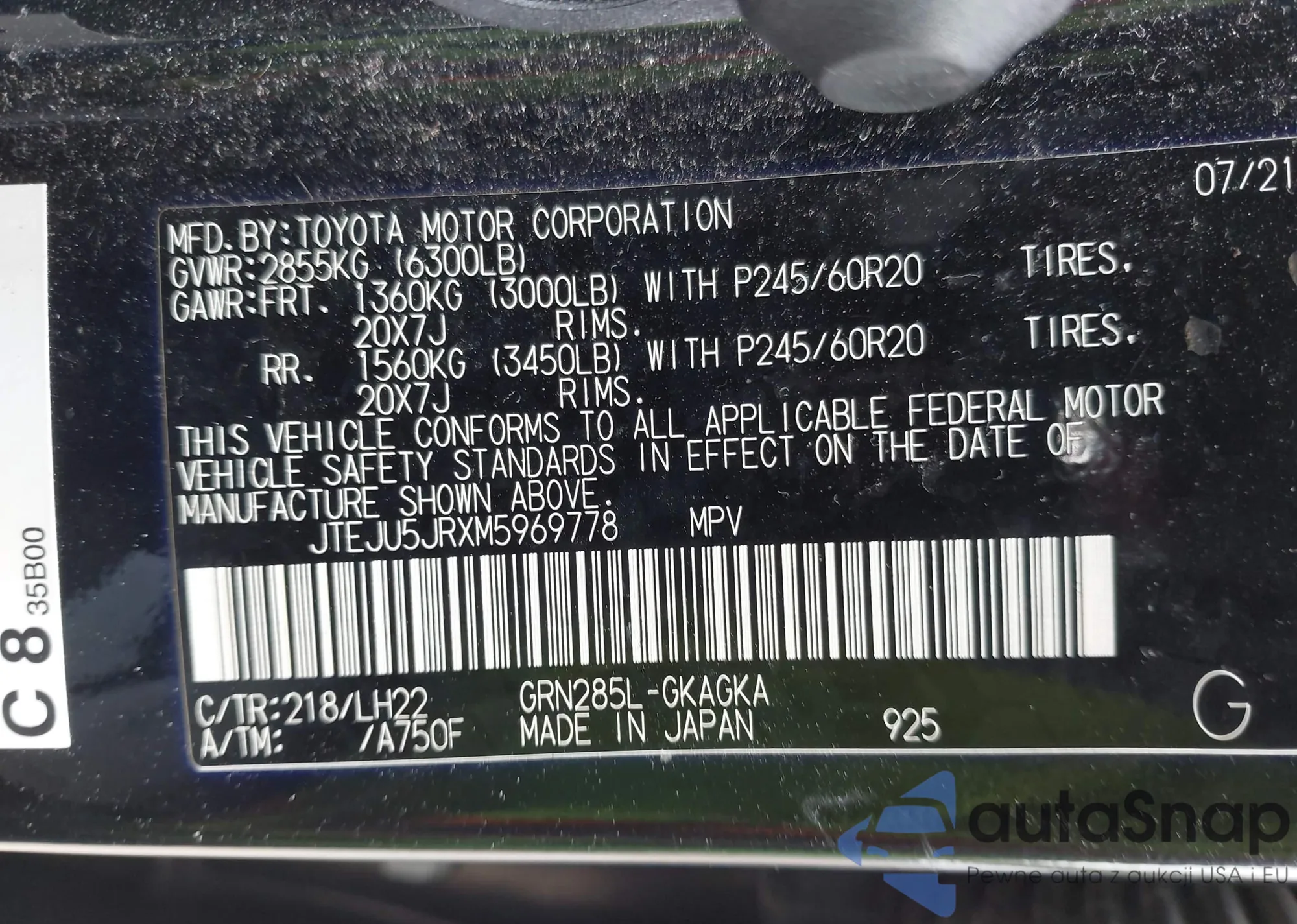 LOT: 42144276 VIN: JTEJU5JRXM5969778