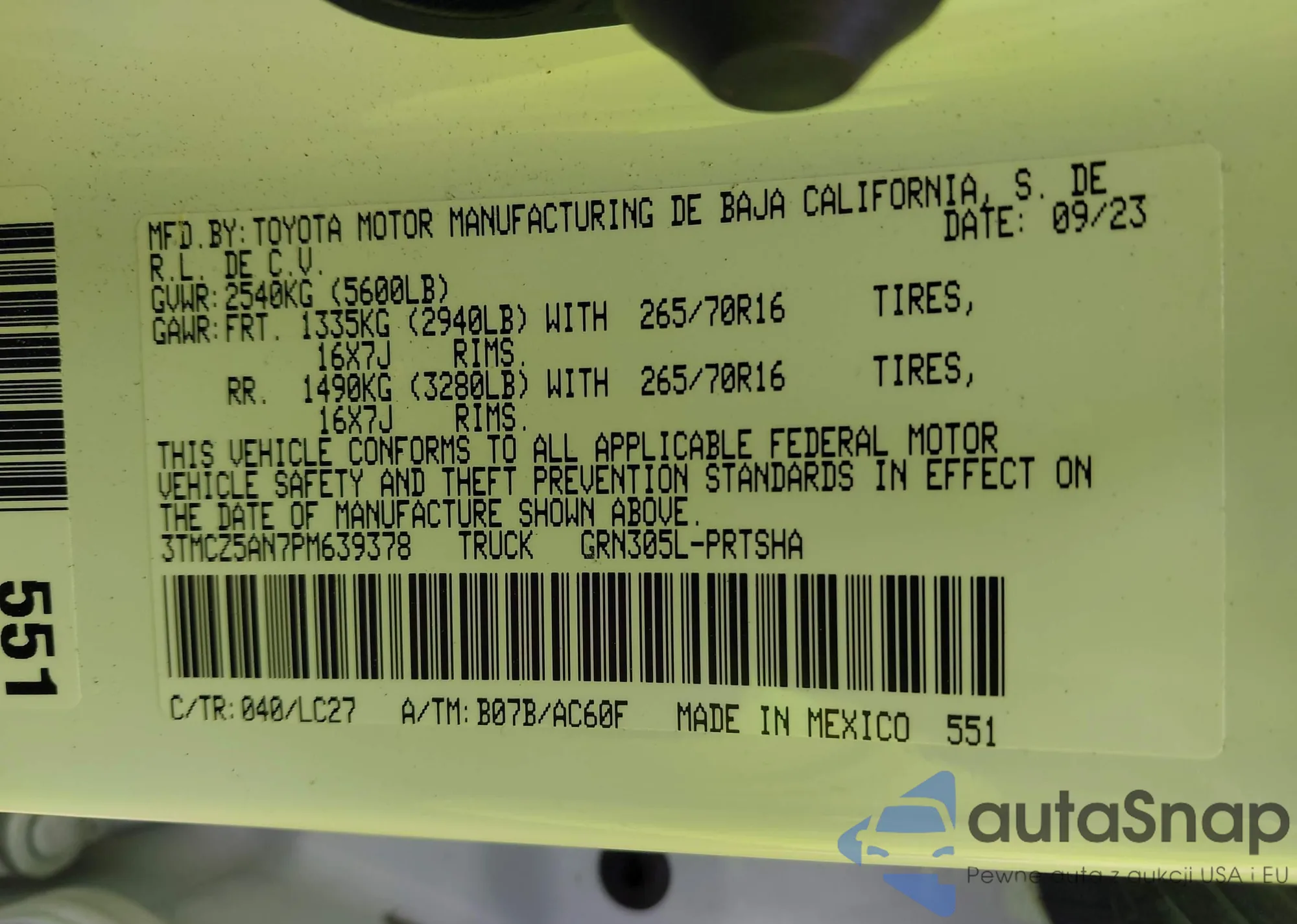• VIN 3TMCZ5AN7PM639378