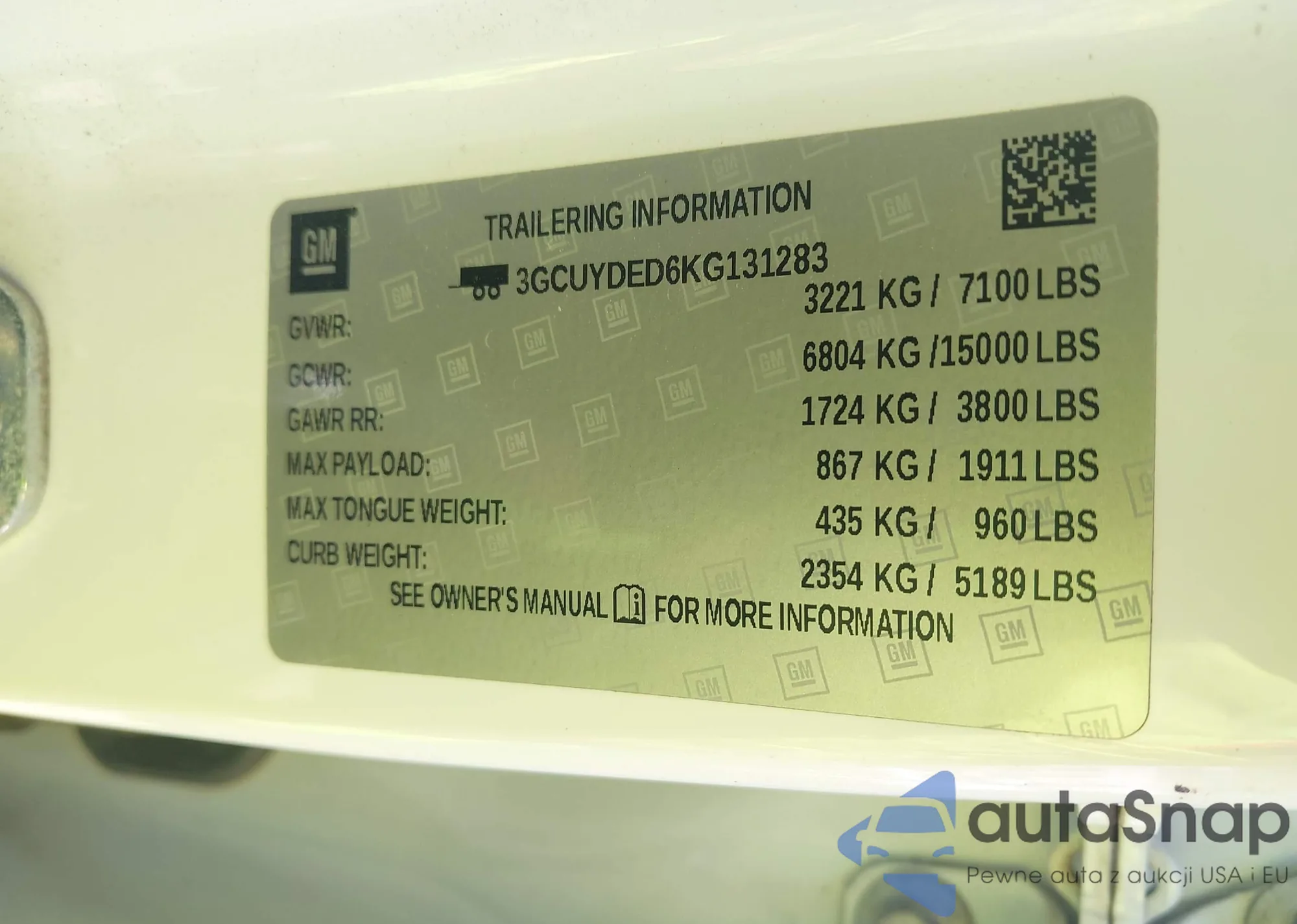 • VIN 3GCUYDED6KG131283