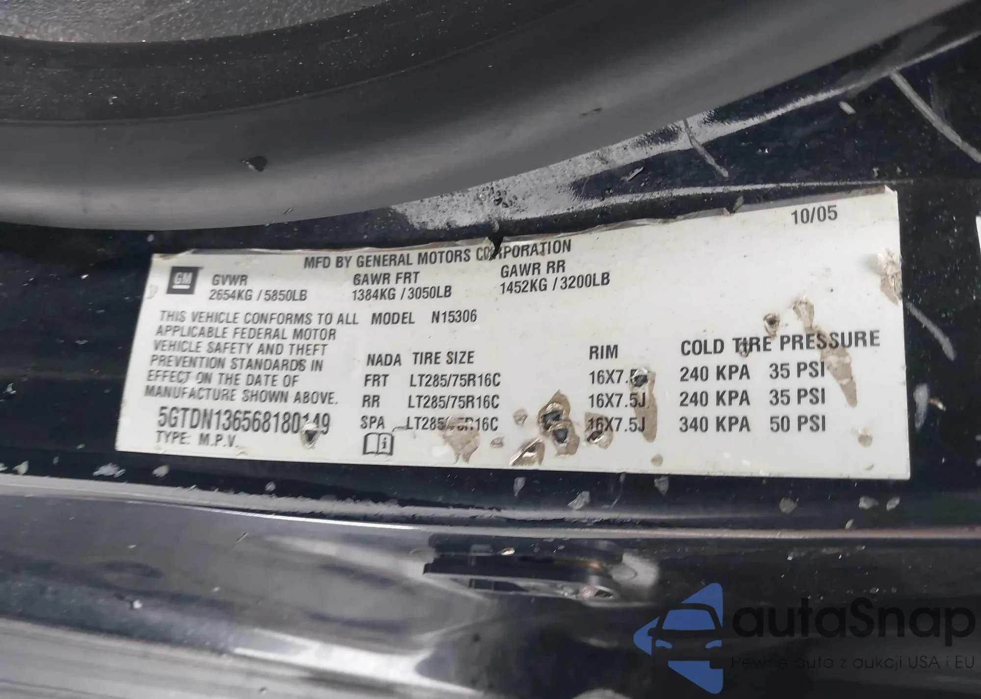 • VIN 5GTDN136568180149