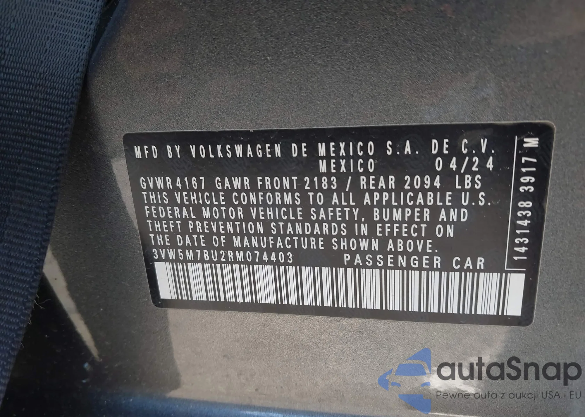 • VIN 3VW5M7BU2RM074403