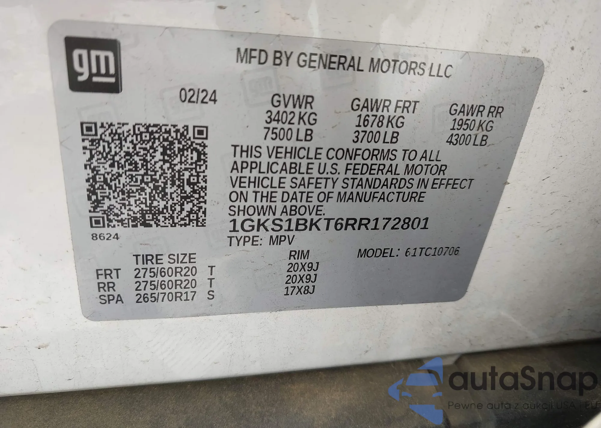 LOT: 42220699 VIN: 1GKS1BKT6RR172801
