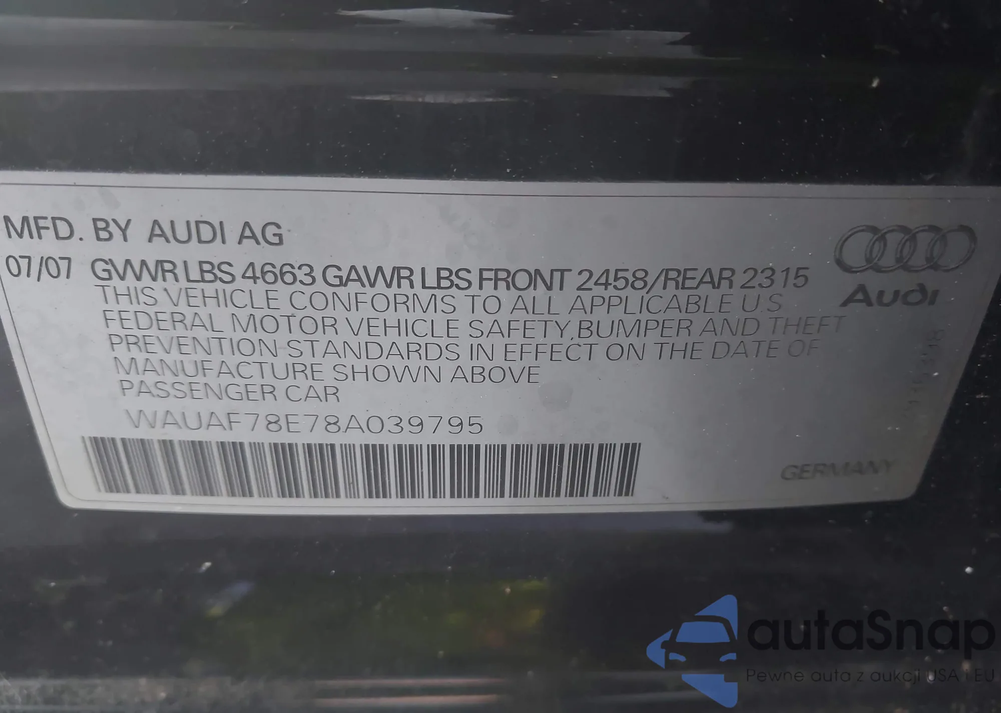 • VIN WAUAF78E78A039795