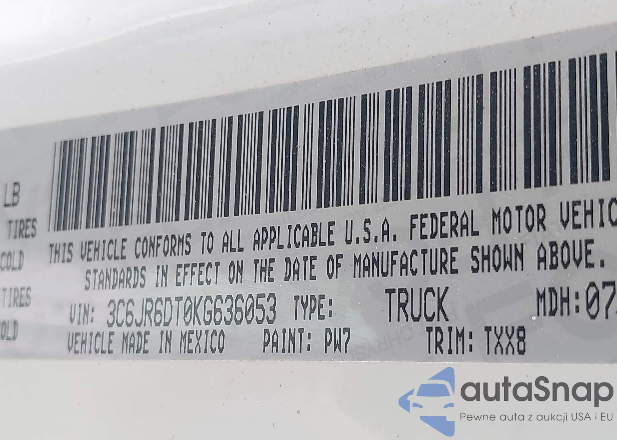 • VIN 3C6JR6DT0KG636053