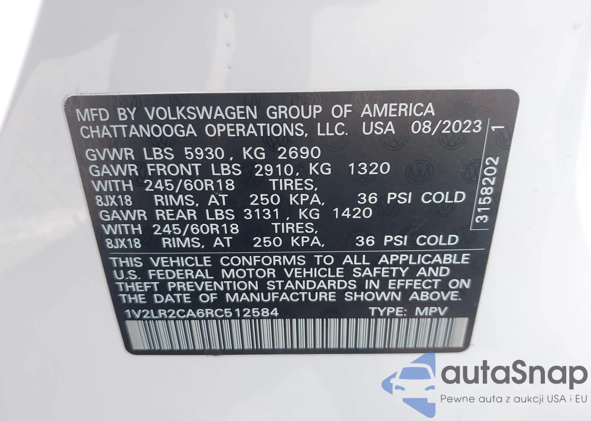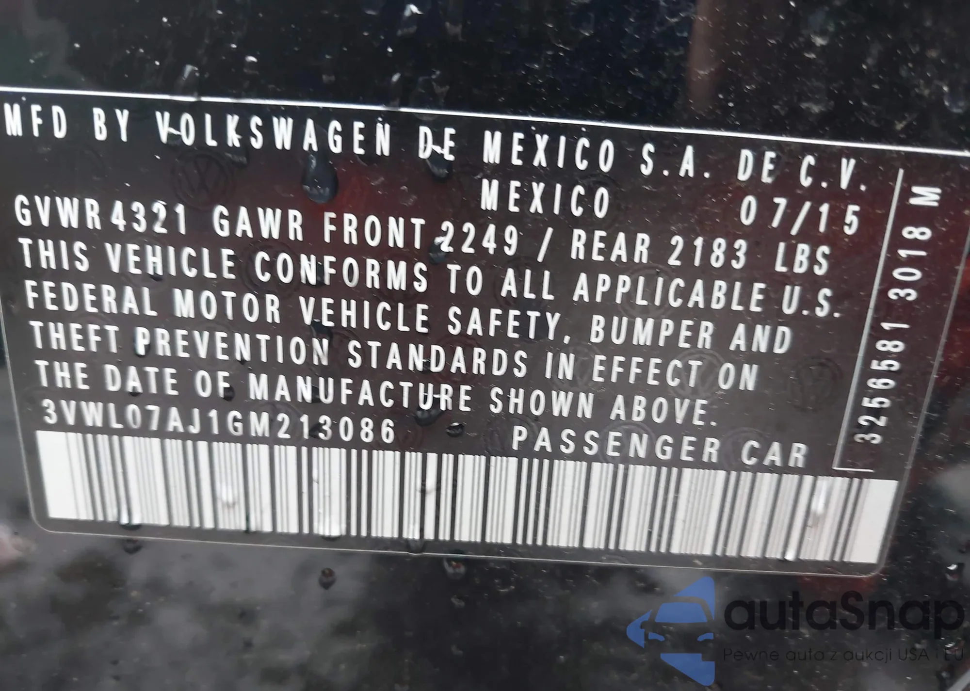 • VIN 3VWL07AJ1GM213086