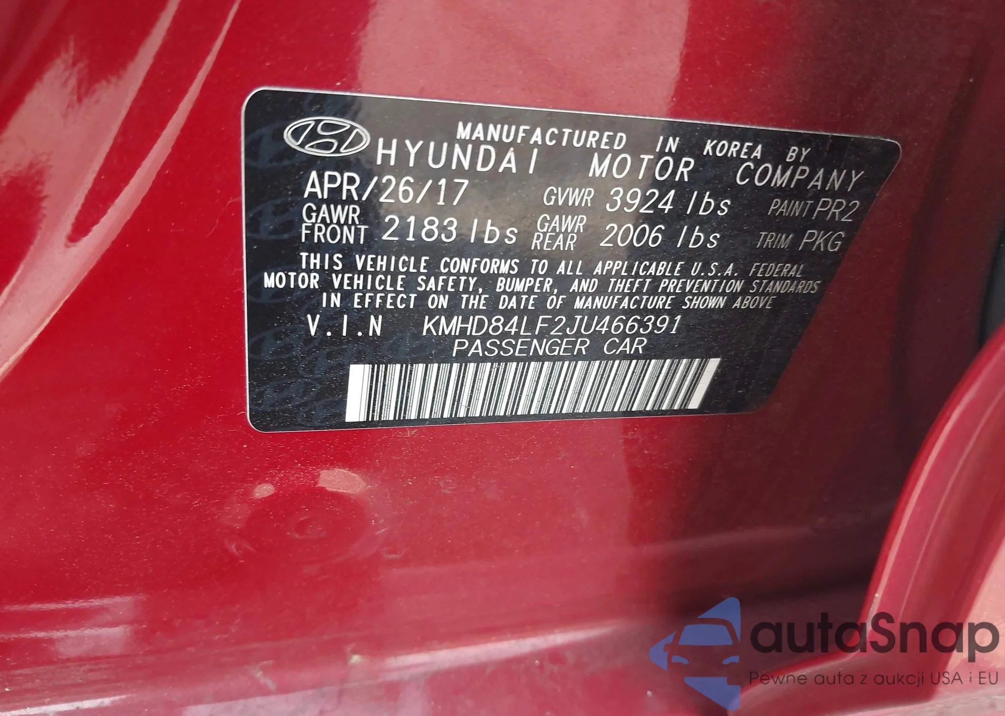 • VIN KMHD84LF2JU466391