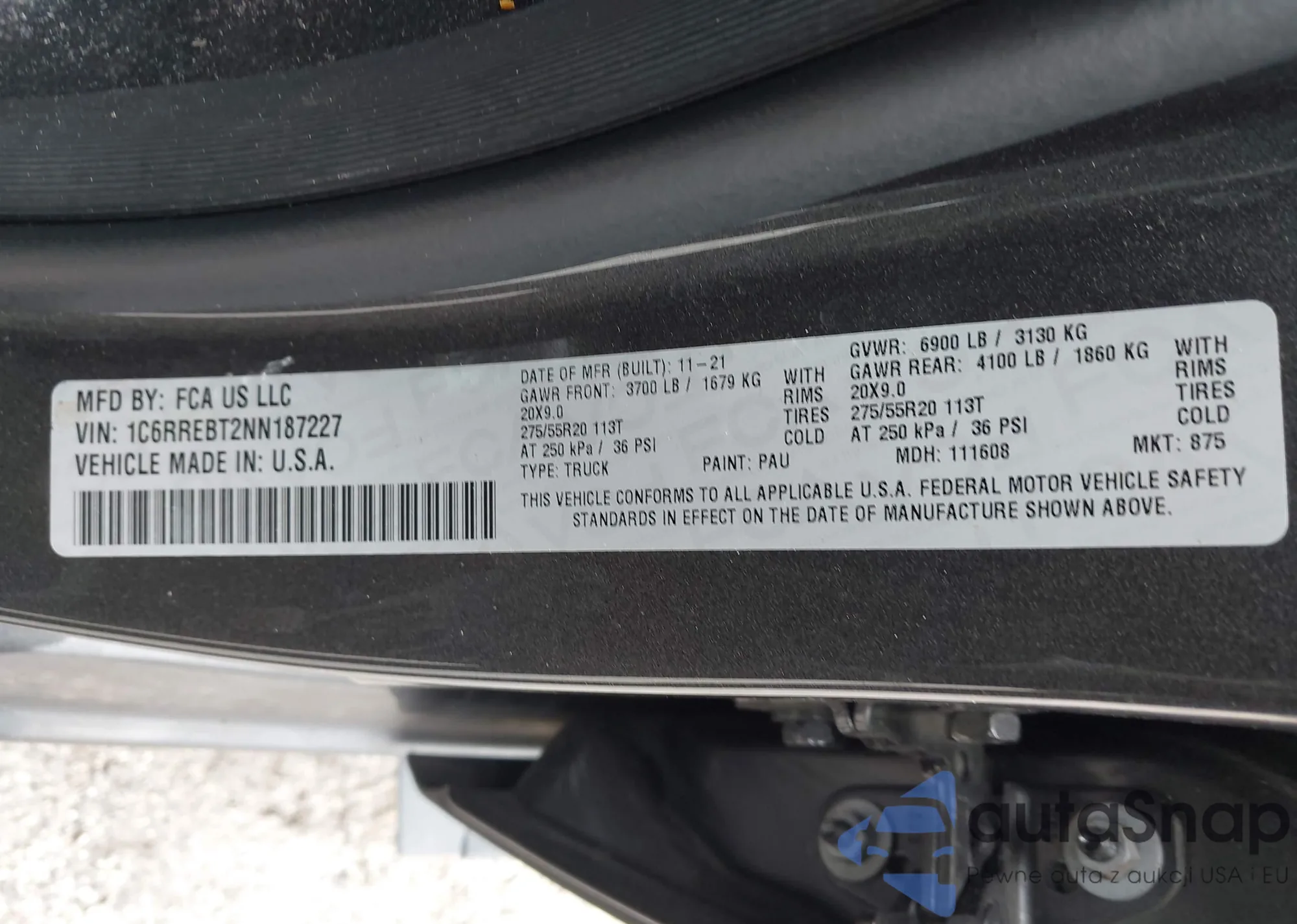 • VIN 1C6RREBT2NN187227
