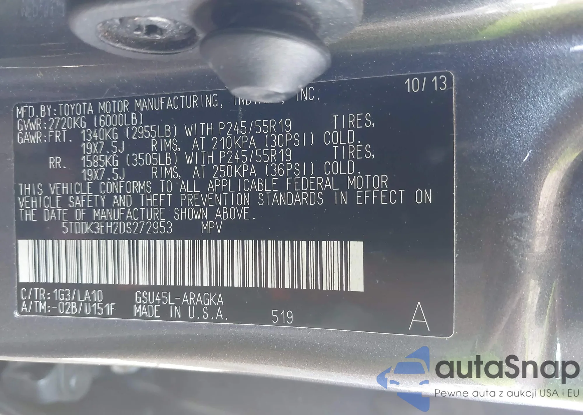 LOT: 42582802 VIN: 5TDDK3EH2DS272953