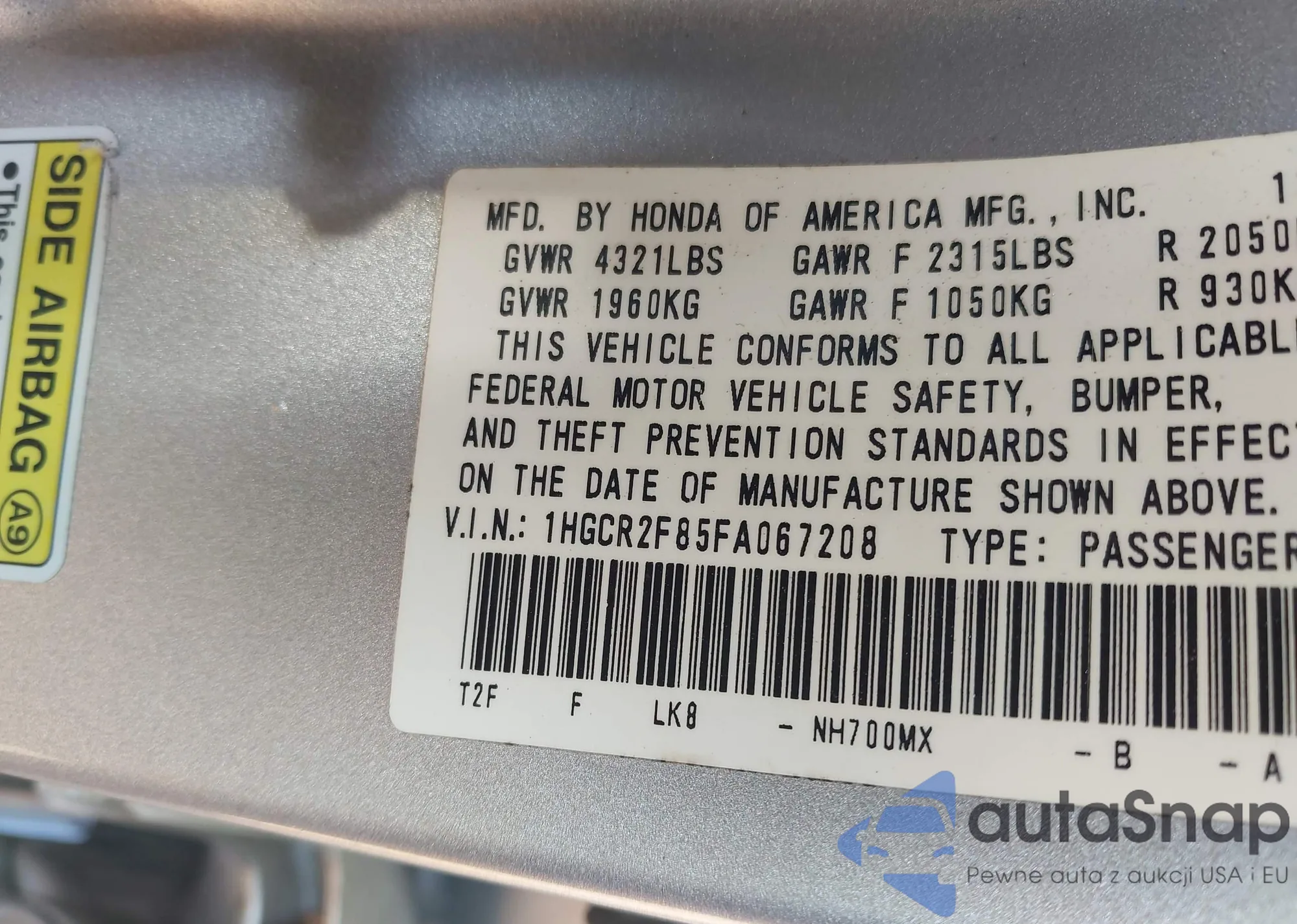 • VIN 1HGCR3F86FA023143