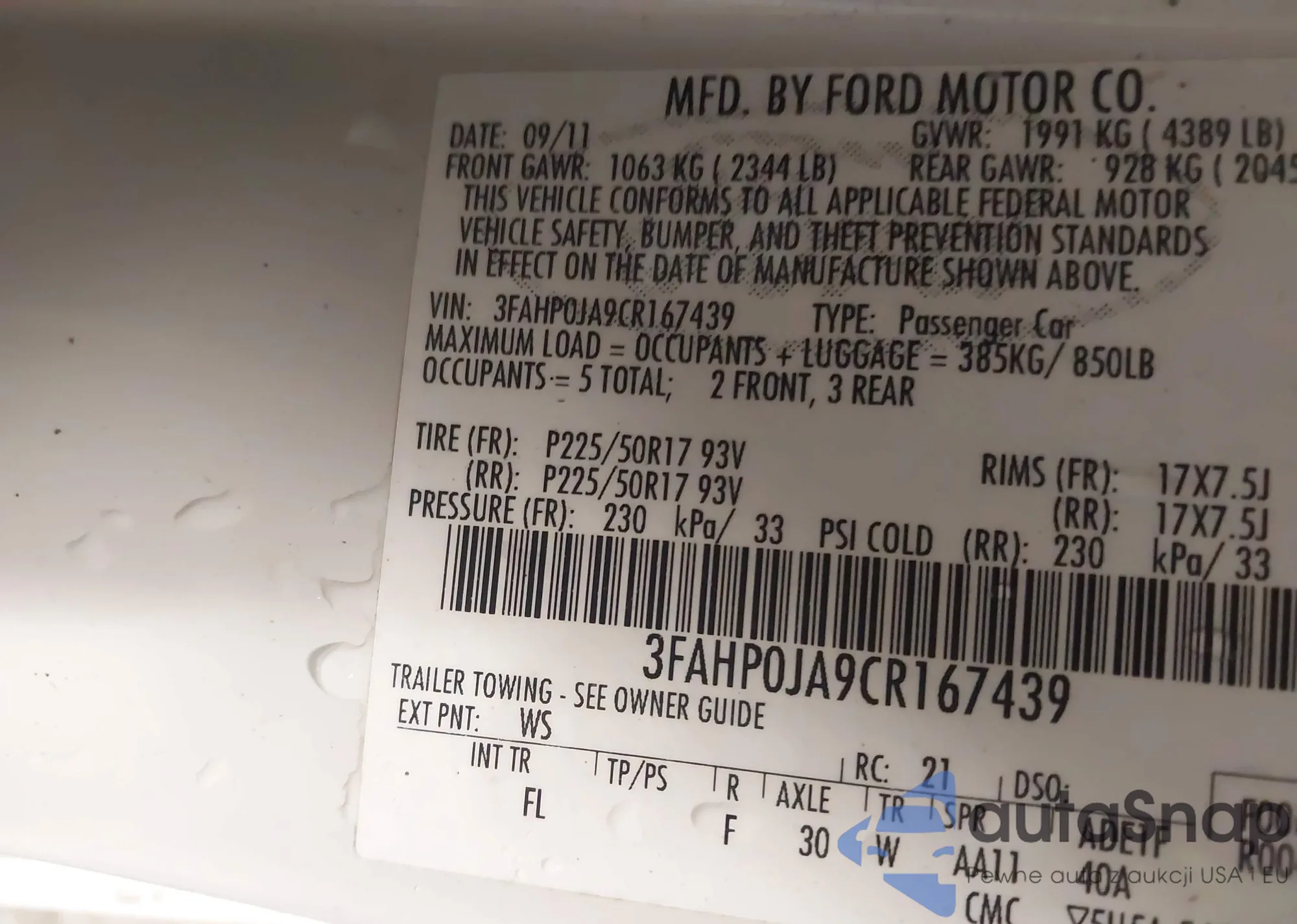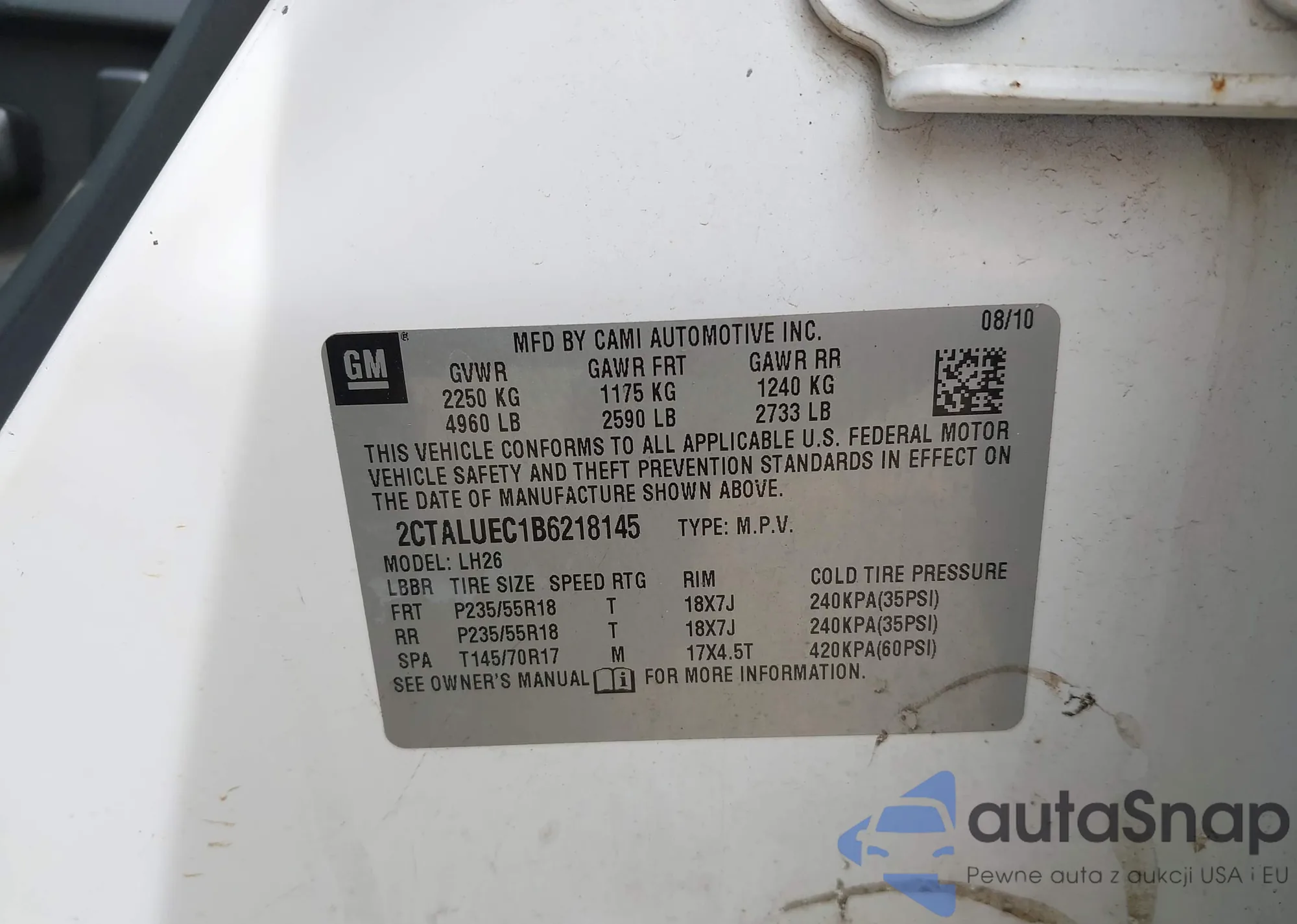 LOT: 42149043 VIN: 2CTALUEC1B6218145