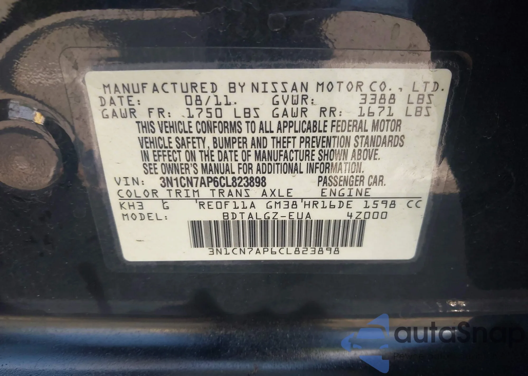 • VIN 3N1CN7AP6CL823898