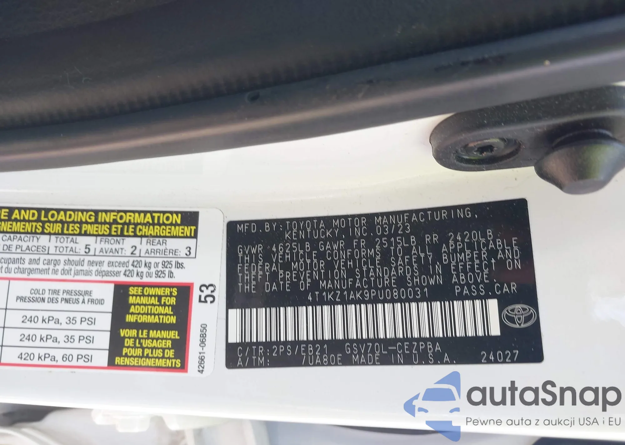 LOT: 42149450 VIN: 4T1C11AK1PU834647