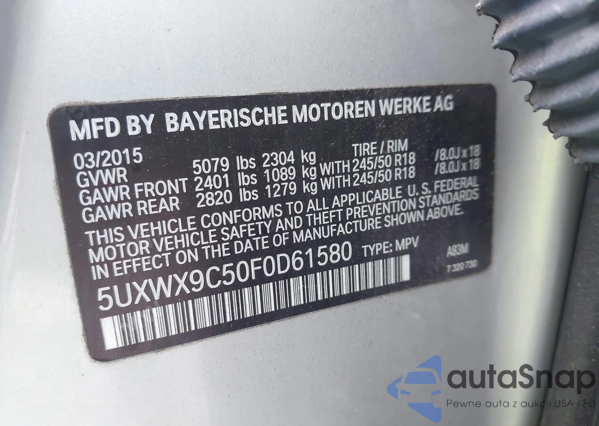 • VIN 5UXWX9C50F0D61580