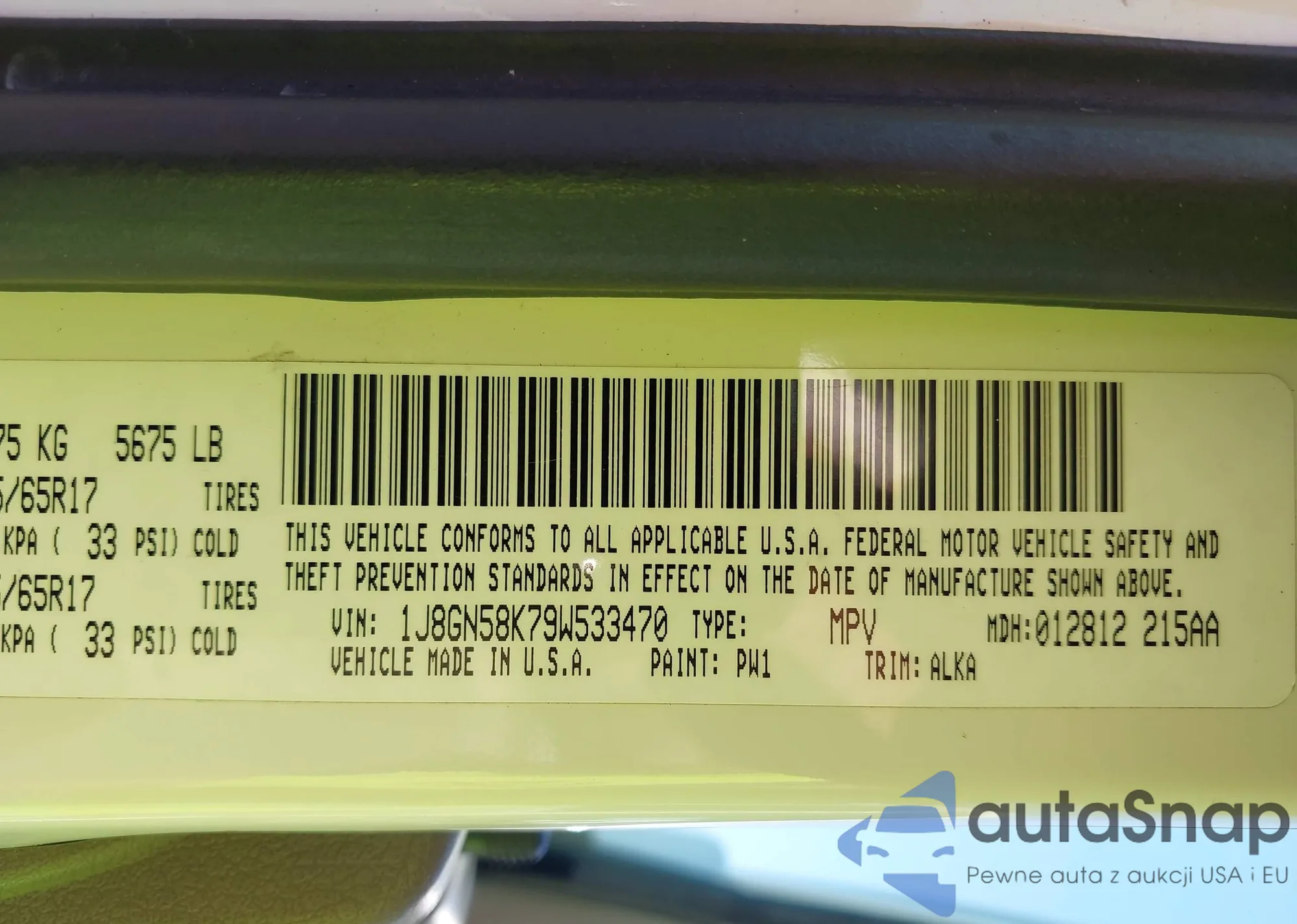 • VIN 1J8GN58K79W533470