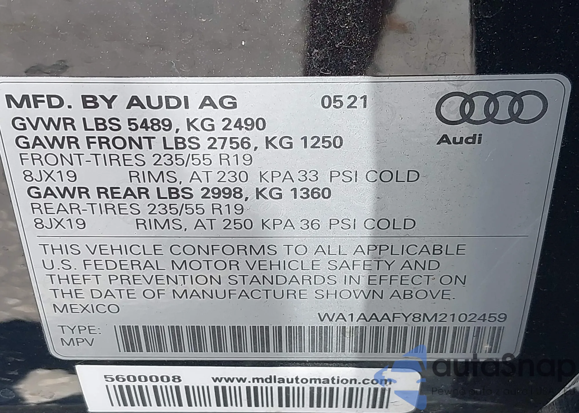 LOT: 42551315 VIN: 4S3BNAF66K3005684