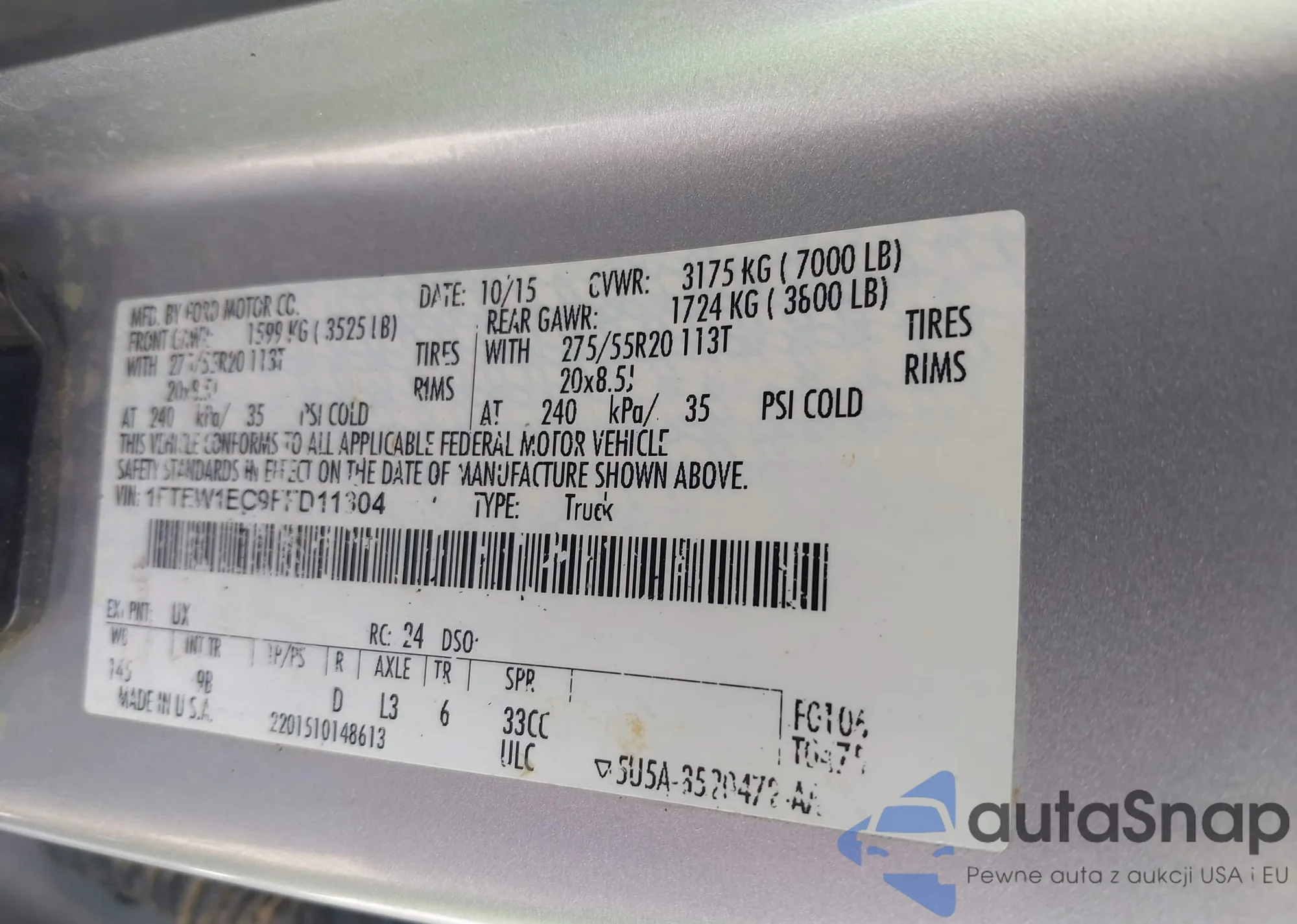 LOT: 42590863 VIN: 1FTEW1EG9FFD11304