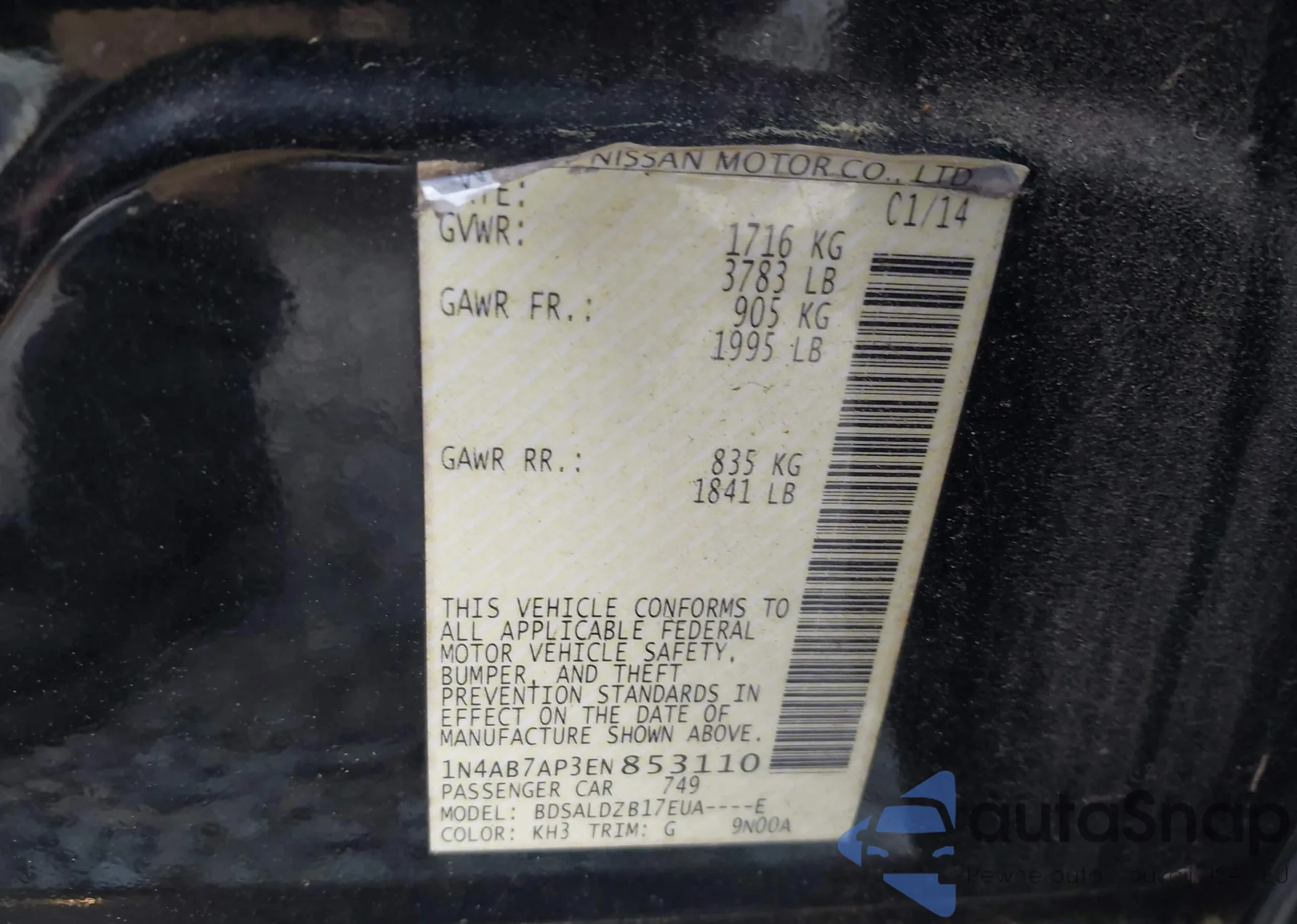 • VIN 1N4AB7AP3EN853110