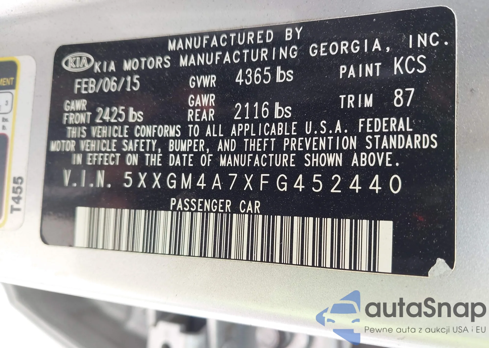 LOT: 42415617 VIN: 5XXGM4A7XFG452440