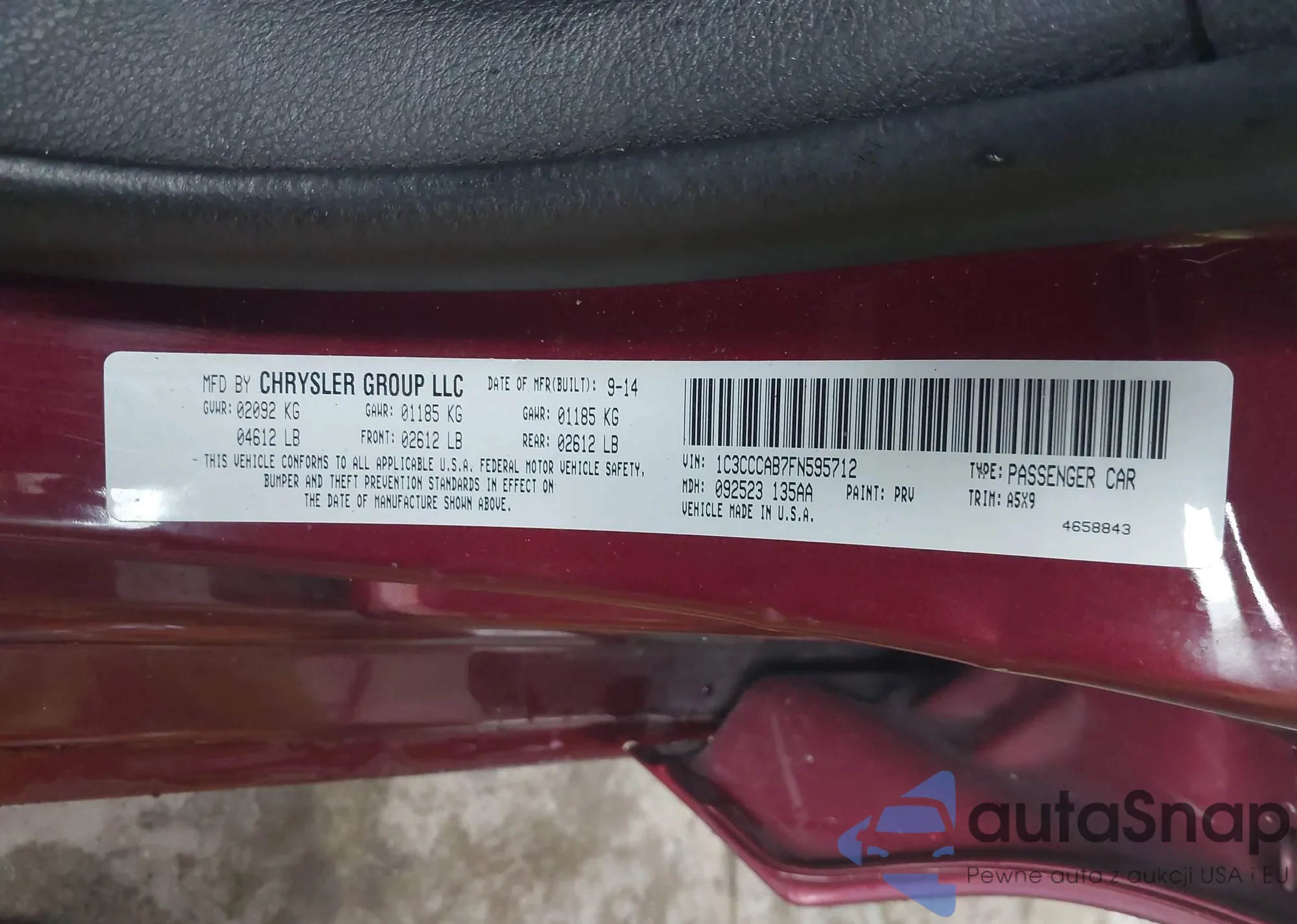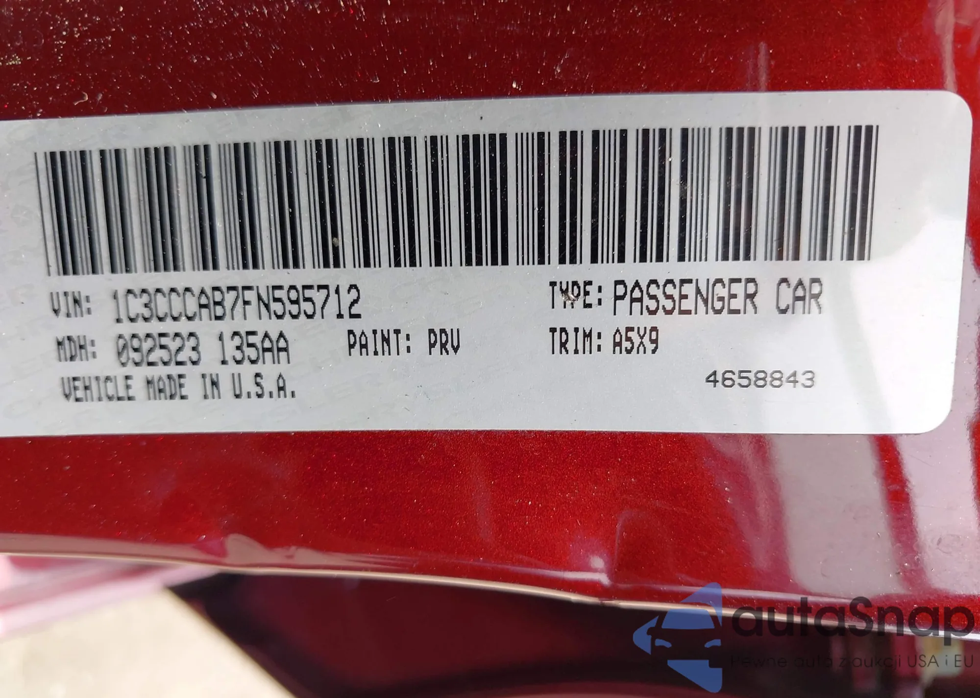 LOT: 42425599 VIN: 1C3CCCAB7FN595712