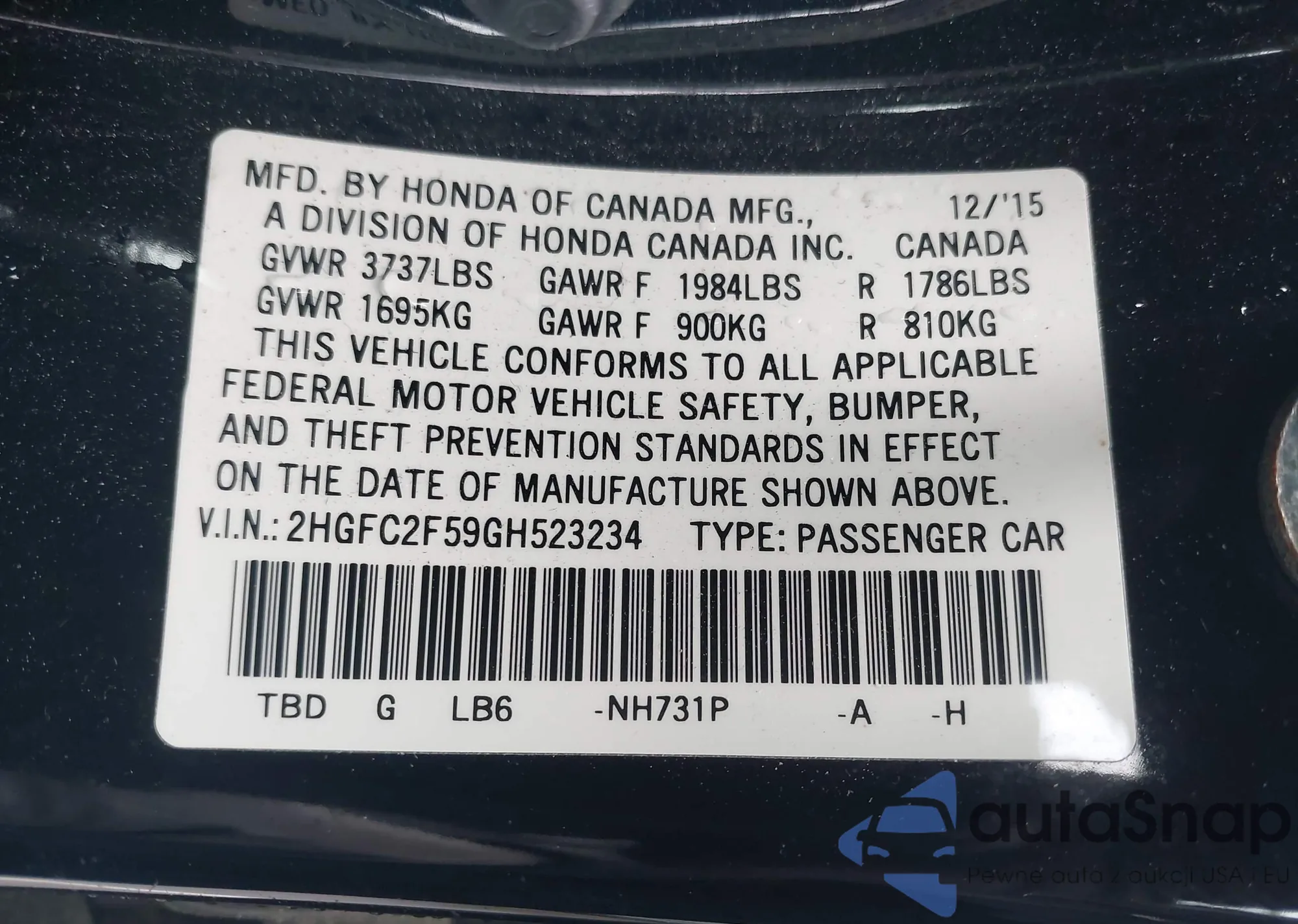 • VIN 2HGFC2F59GH523234