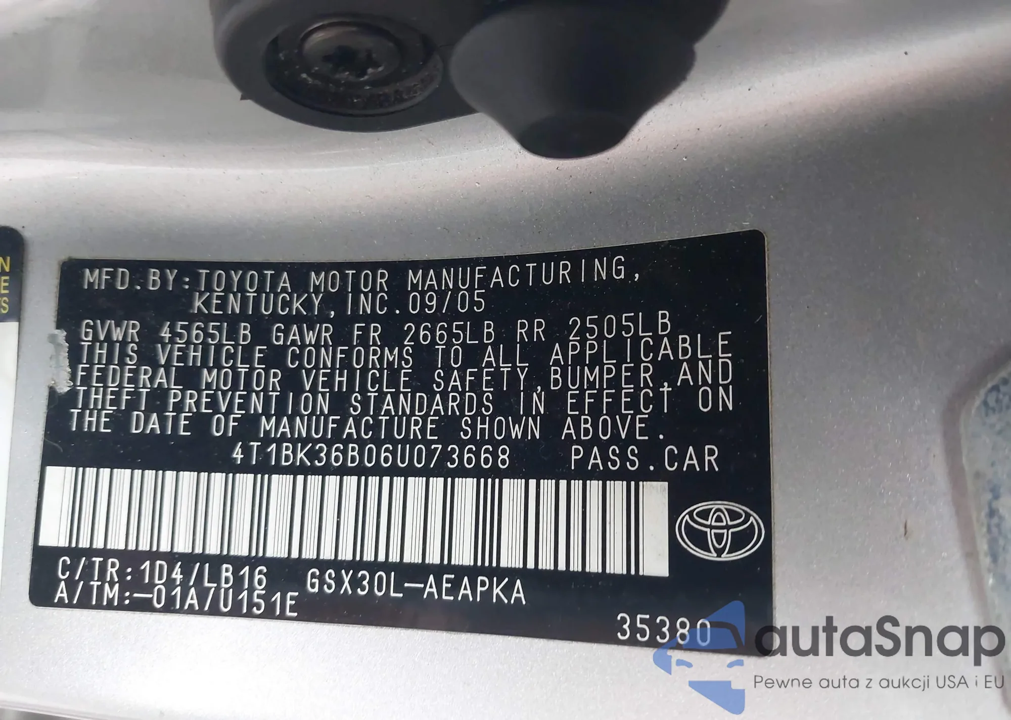 LOT: 42643883 VIN: 4T1BK36B06U073668