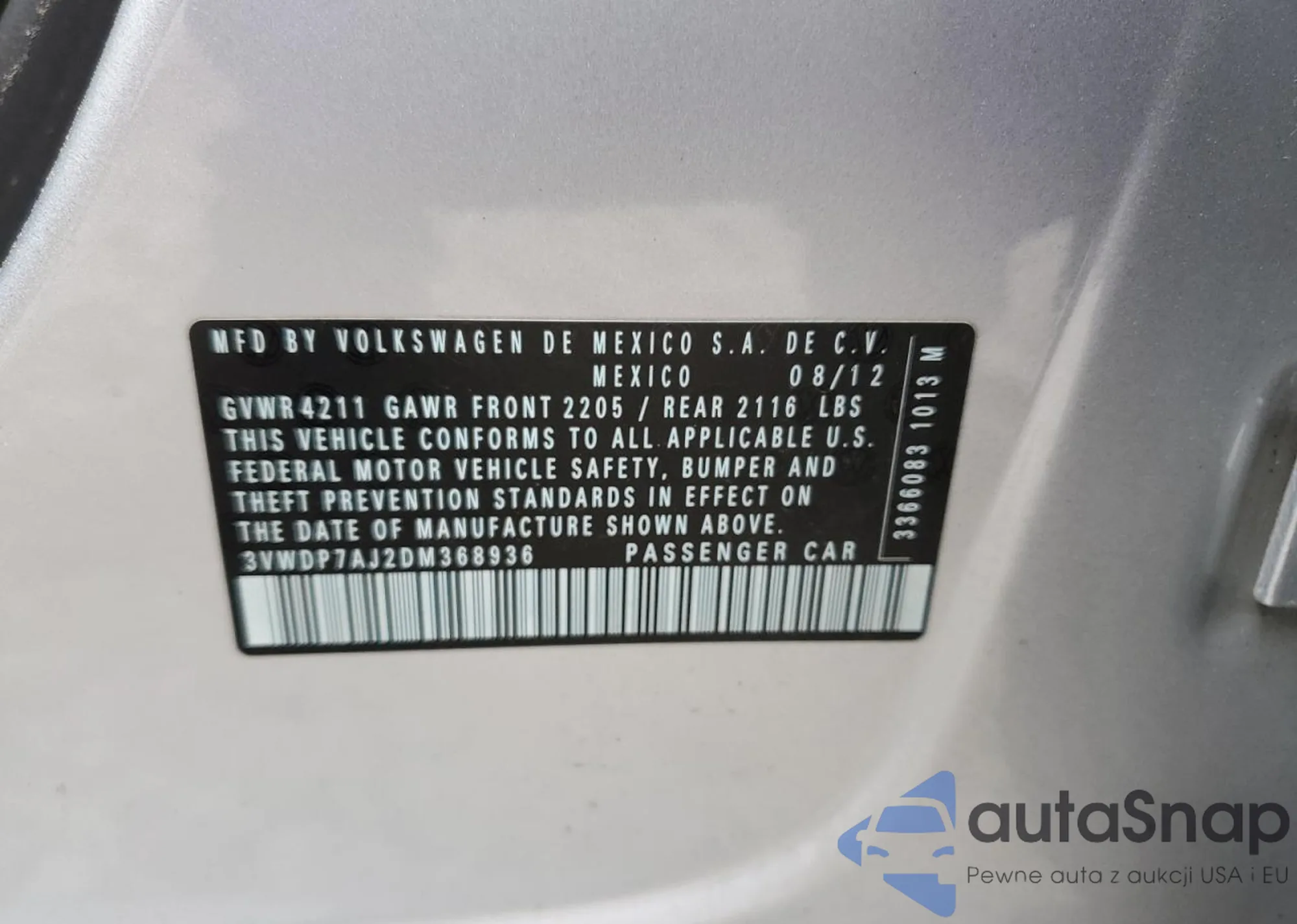 • VIN 3VWDP7AJ2DM368936