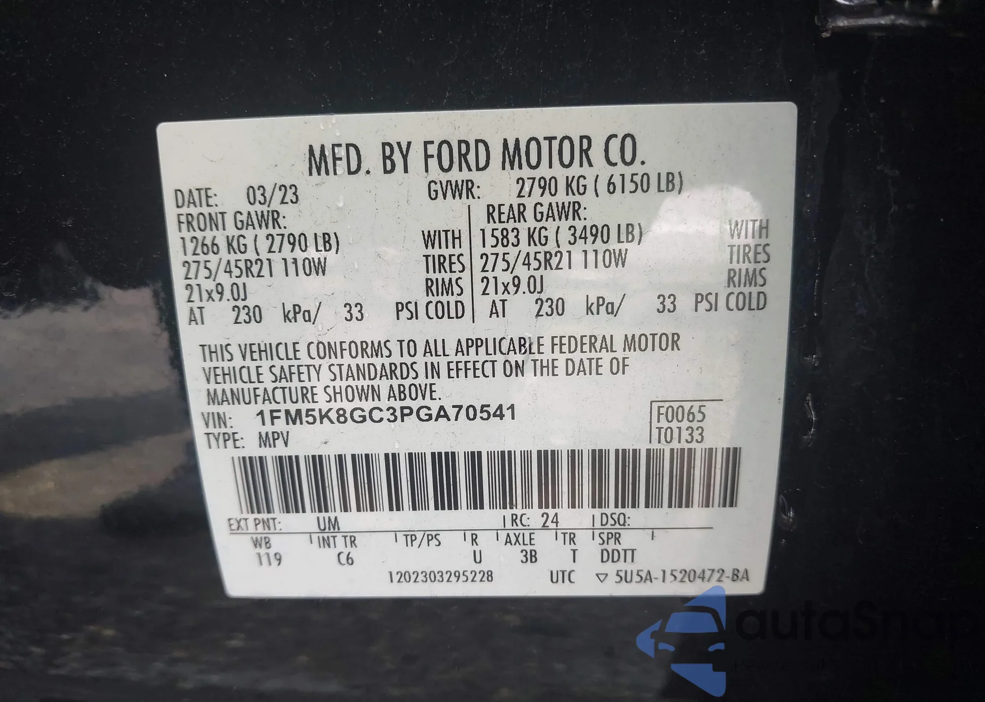 • VIN 1FM5K8GC3PGA70541
