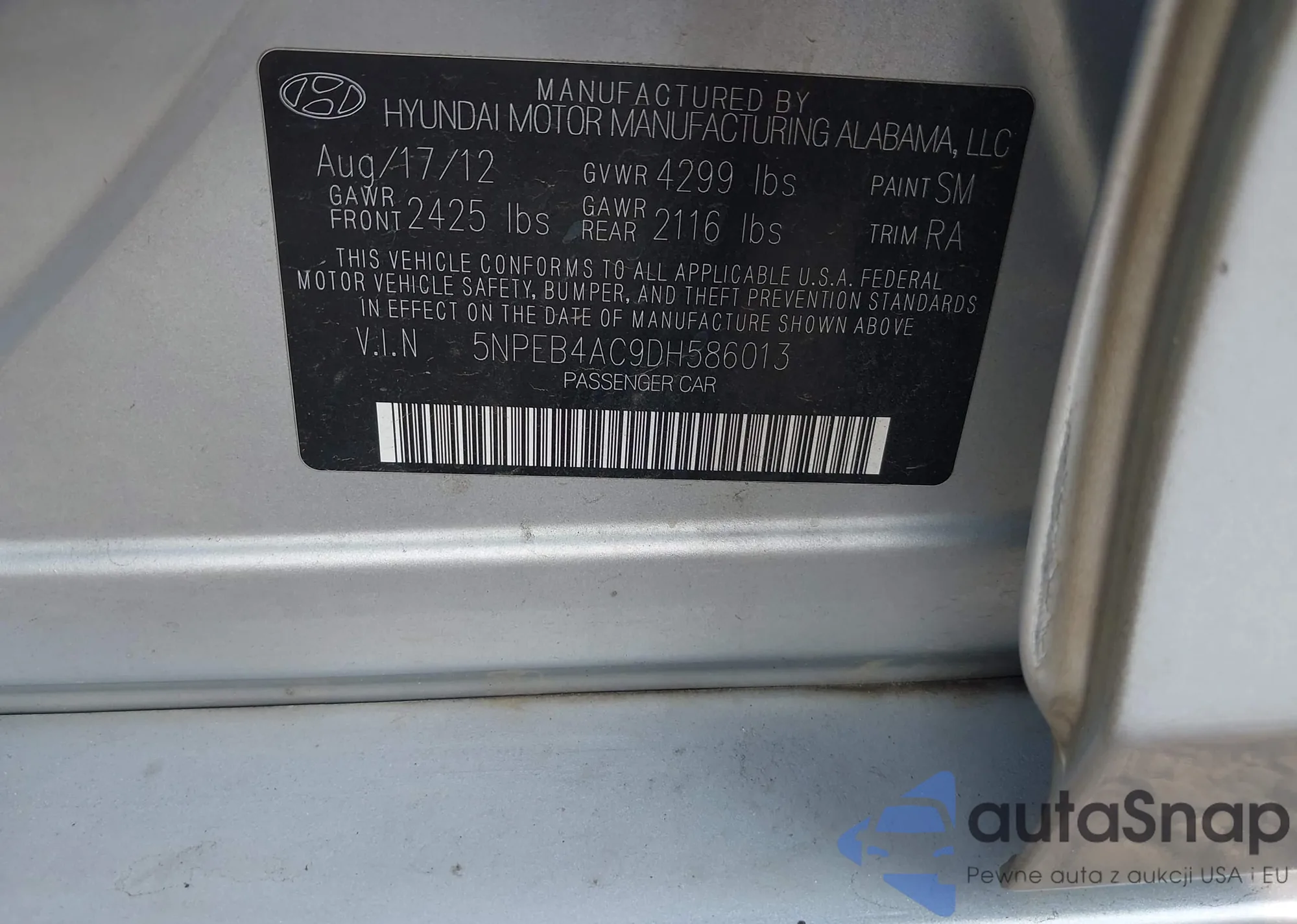 LOT: 42366843 VIN: 1N4AL3APXDC229093