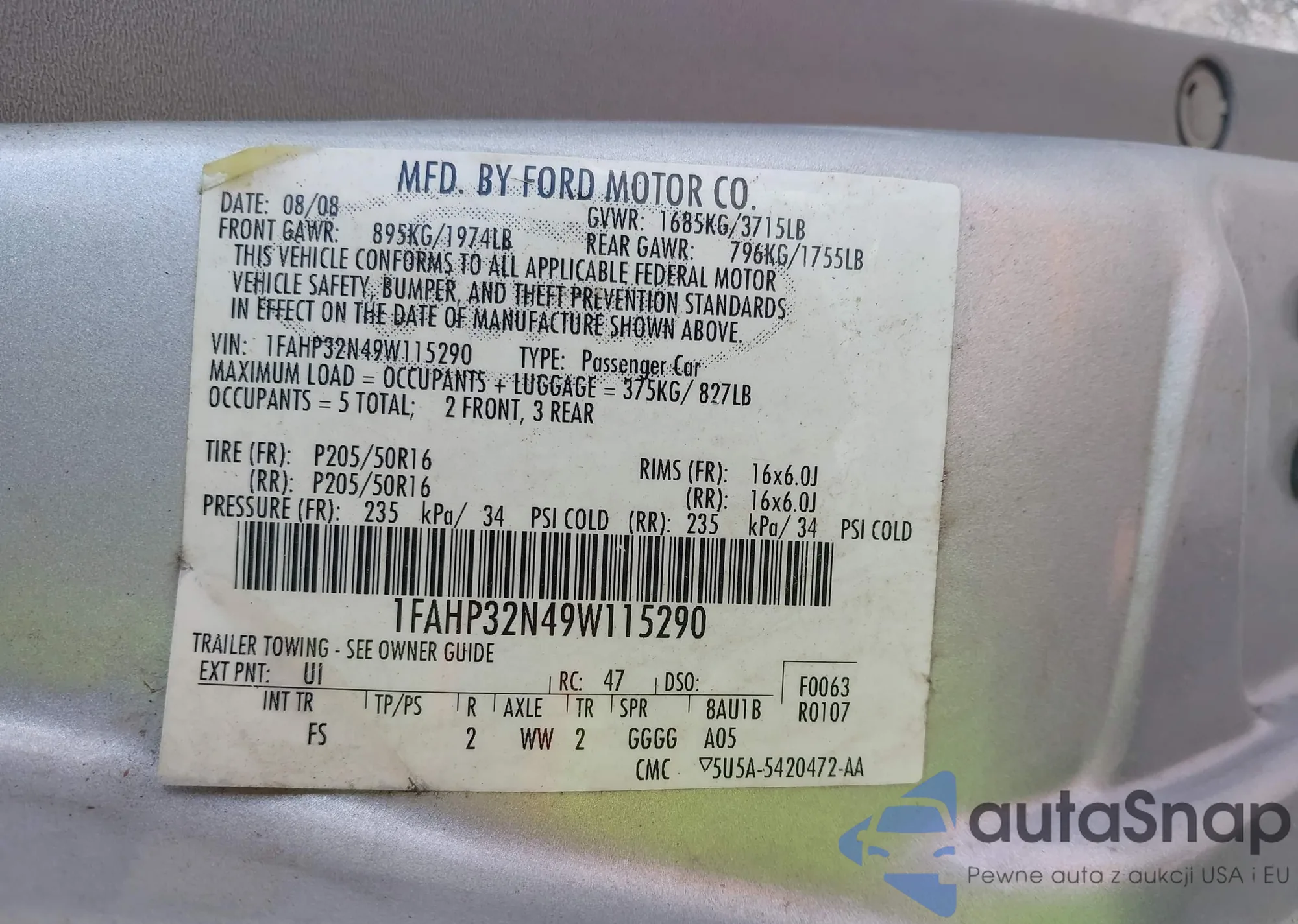 • VIN 1FAHP3F22CL375521