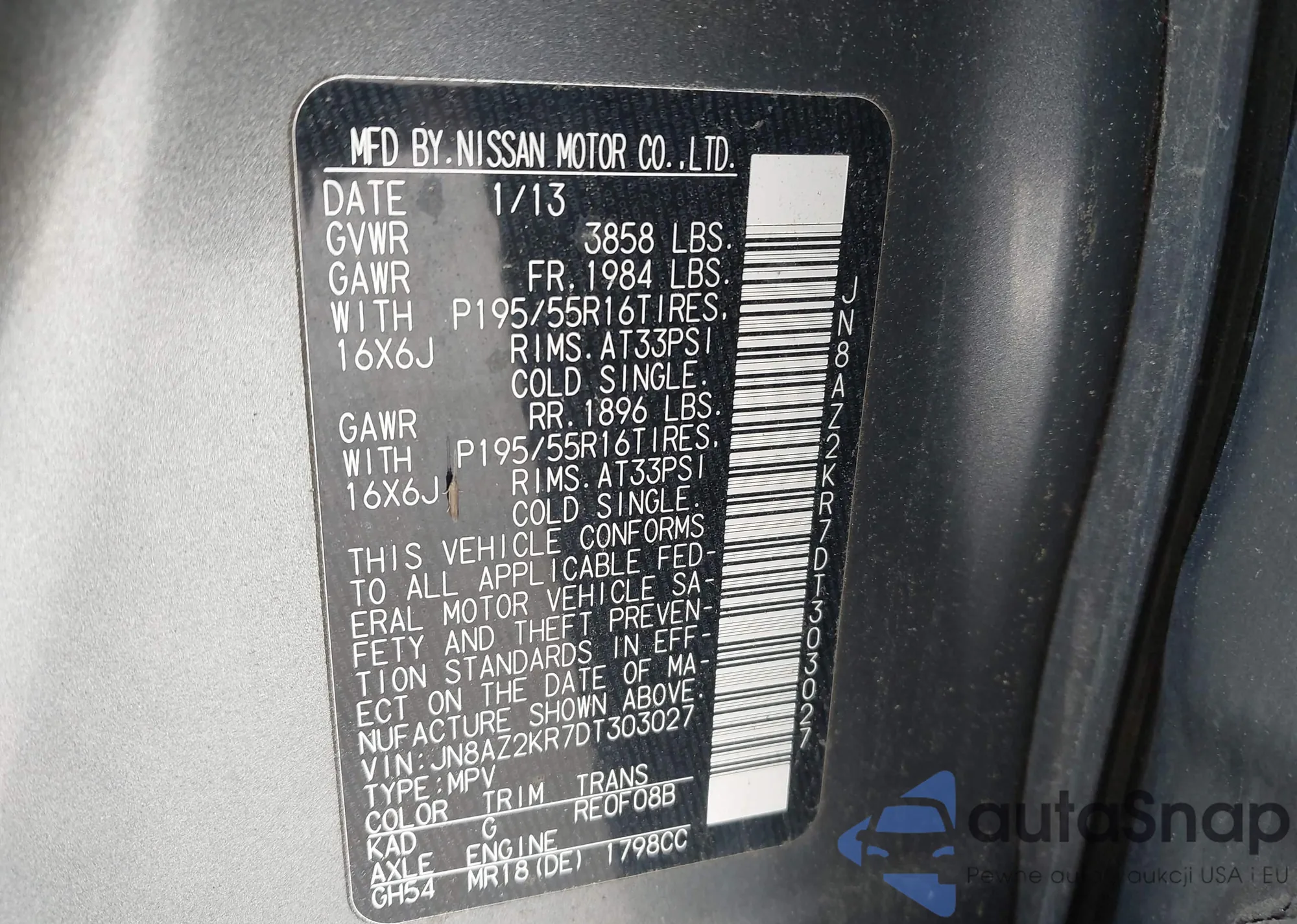 • VIN JN8AZ2KR7DT303027