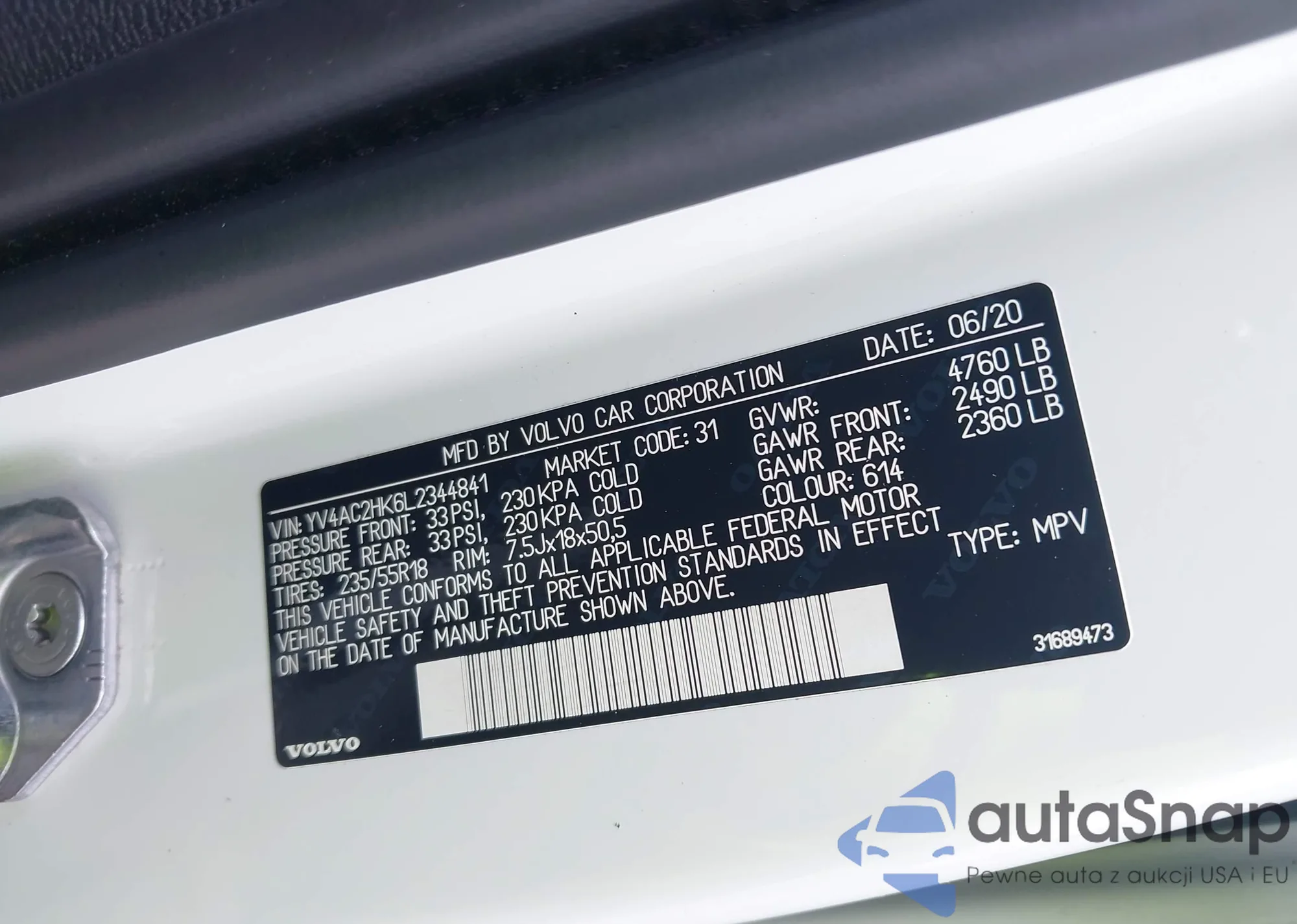 • VIN YV4AC2HK6L2344841
