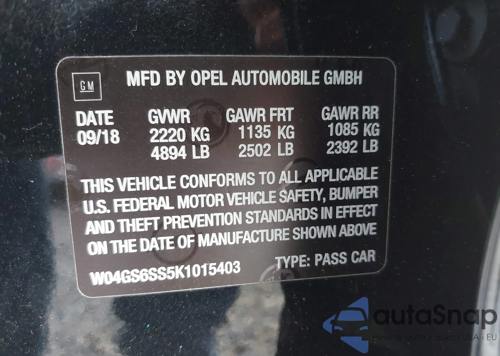 • VIN W04GS6SS5K1015403