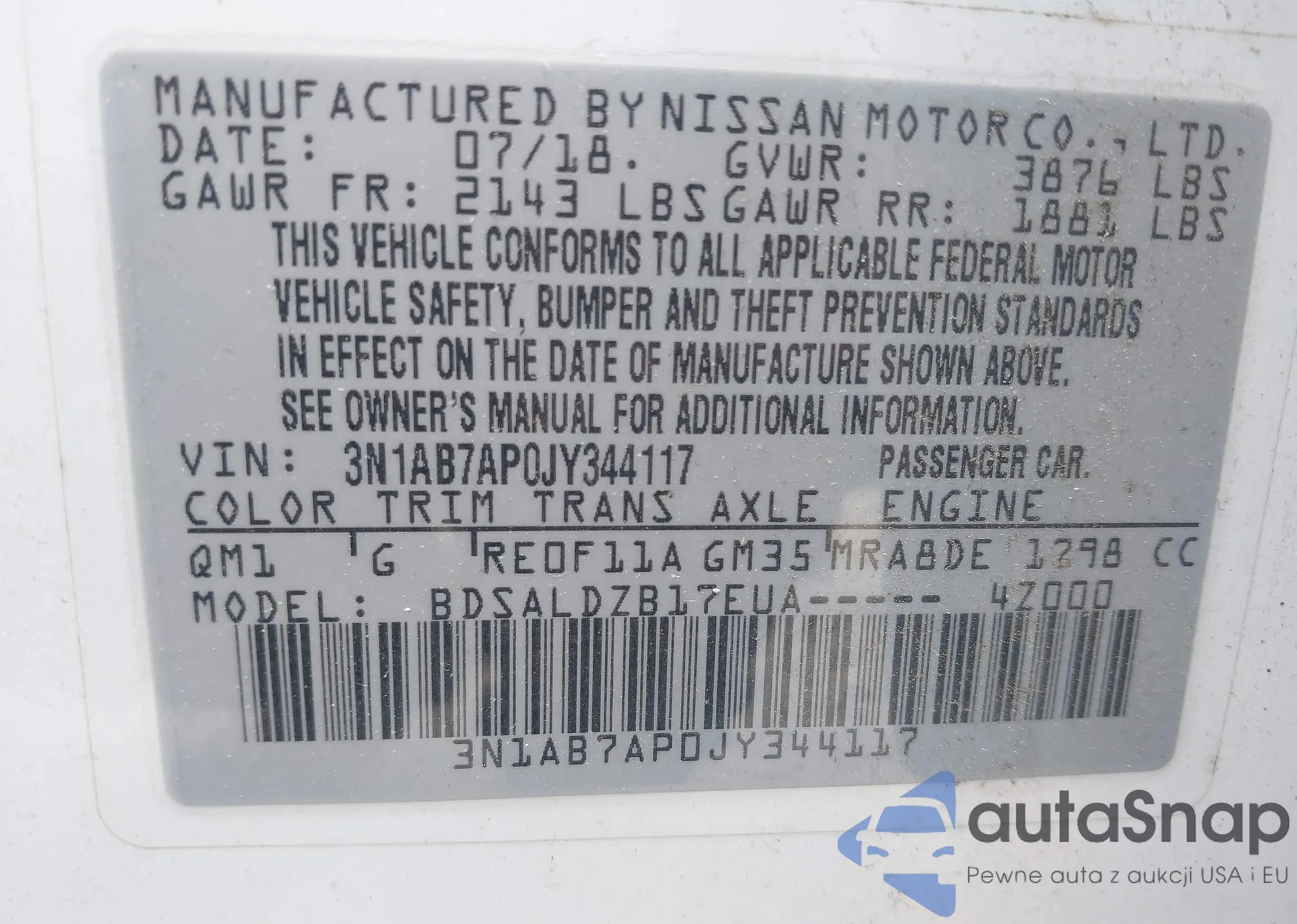 • VIN 3N1AB7AP0JY344117