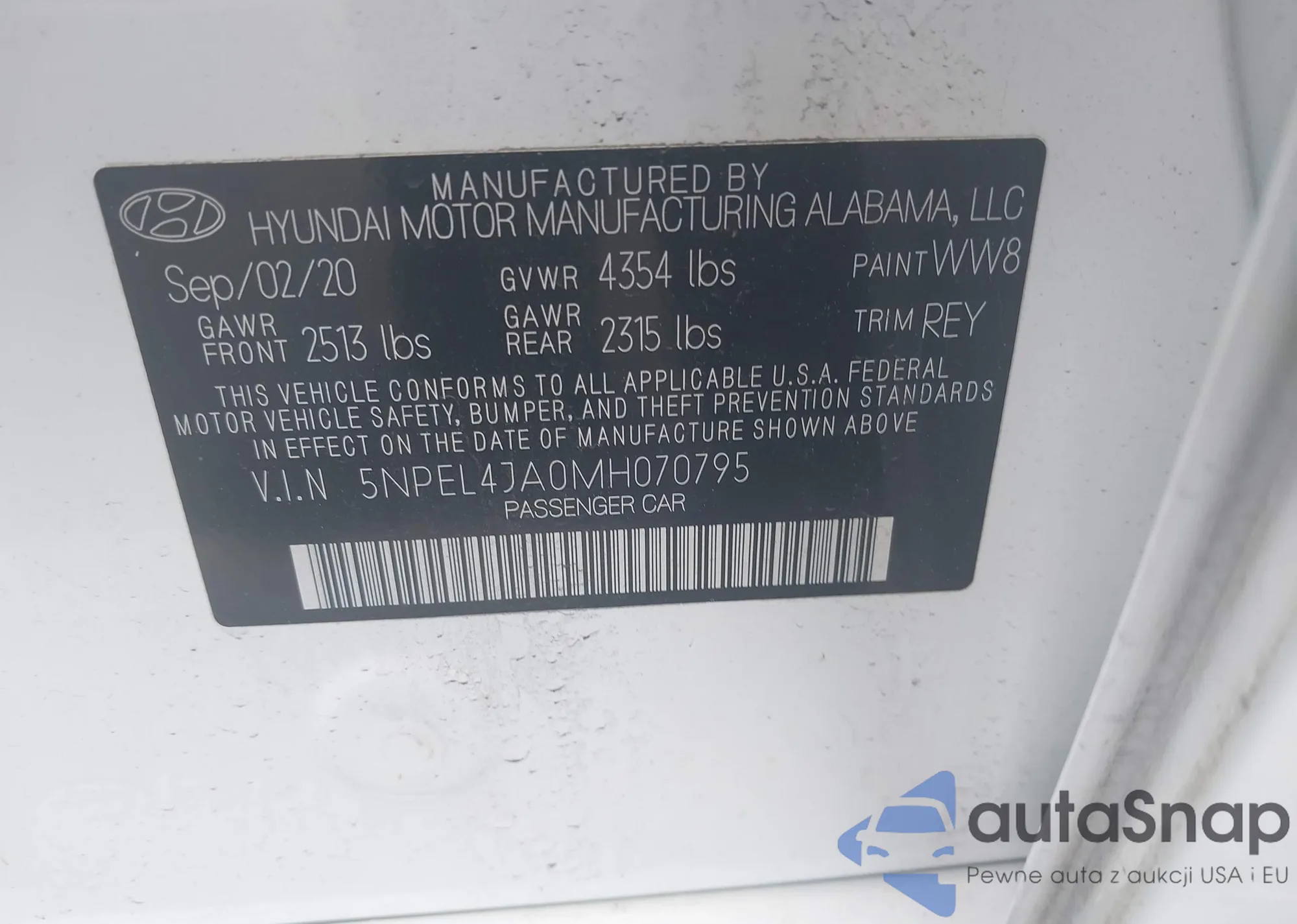 • VIN 5NPEL4JA0MH070795