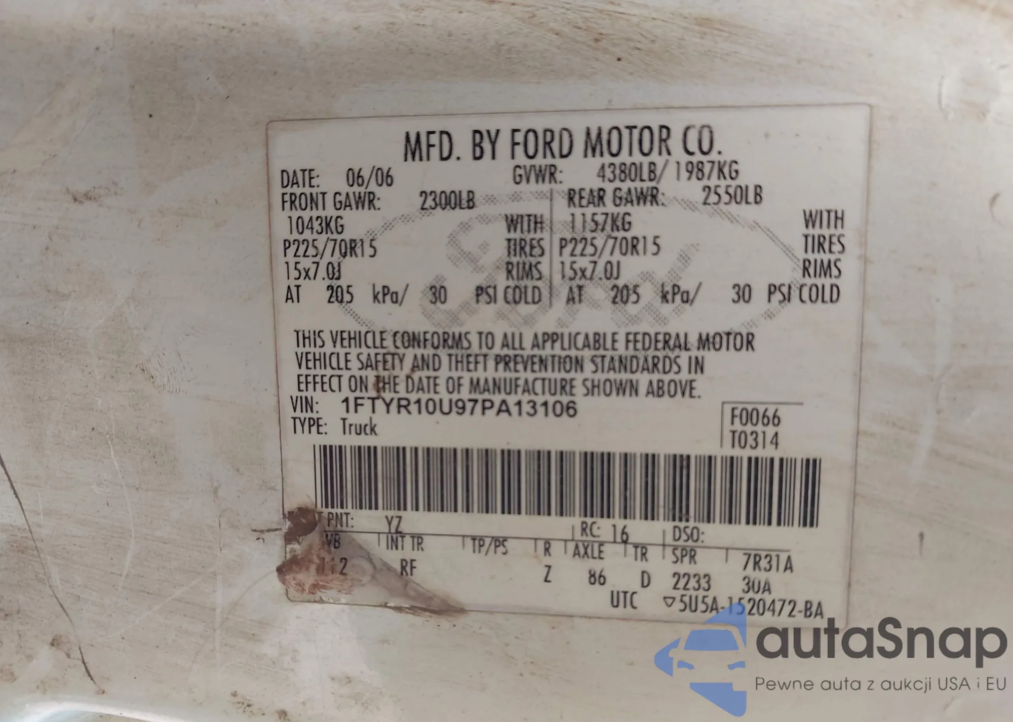 LOT: 42447433 VIN: 1FTYR10U97PA13106