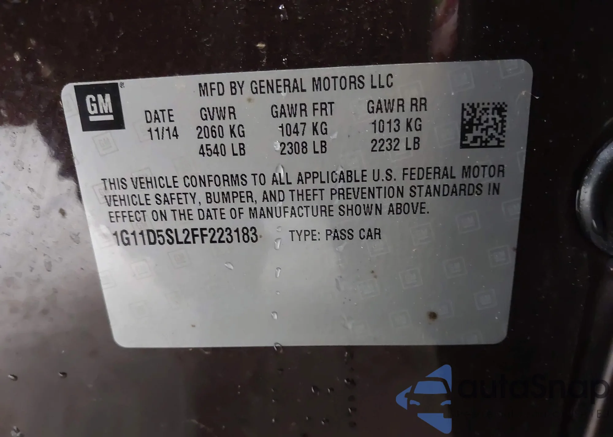 • VIN 1G11D5SL2FF223183
