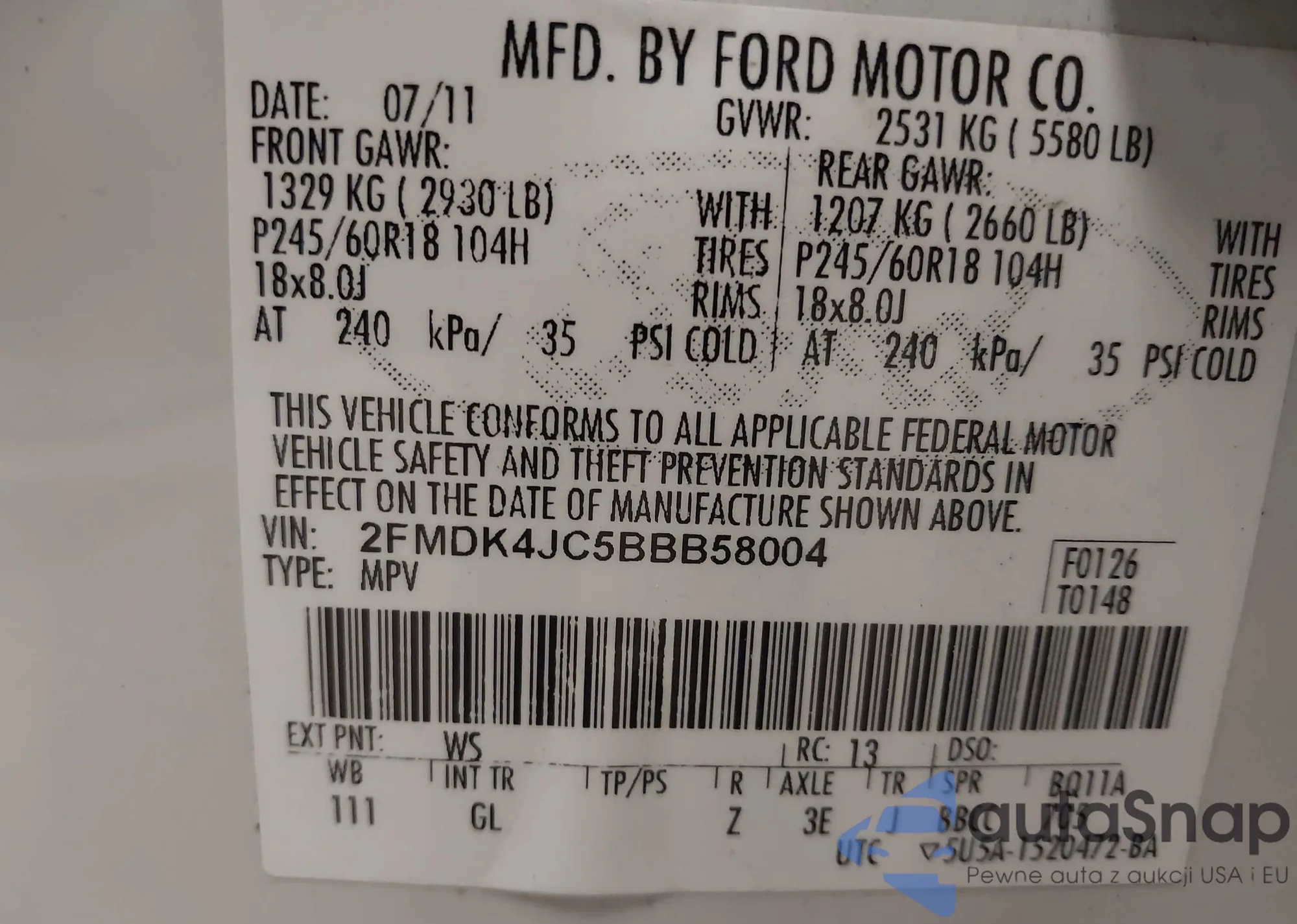 LOT: 42576901 VIN: 1FMNE11W57DB28135