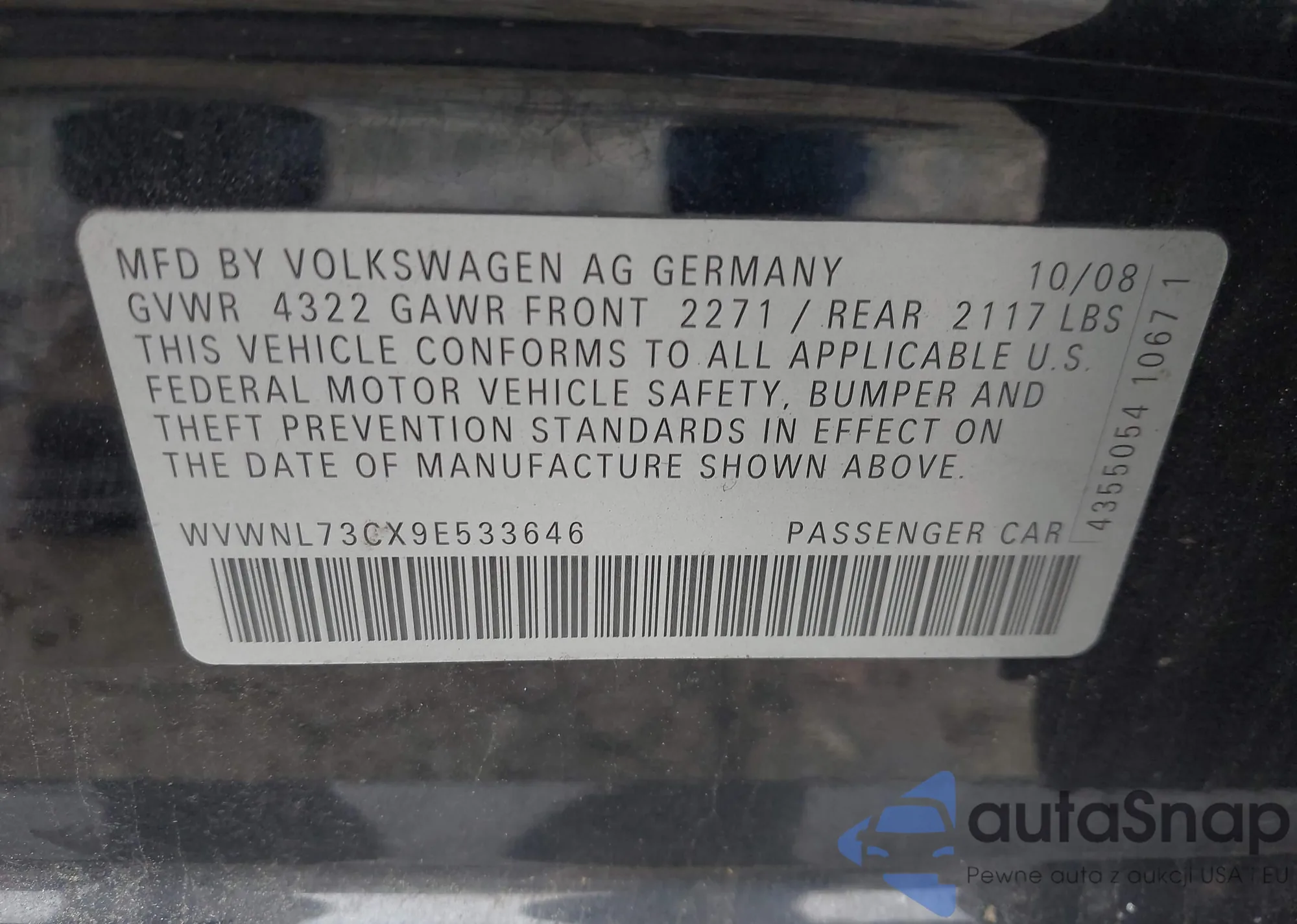 • VIN WVWNL73CX9E533646