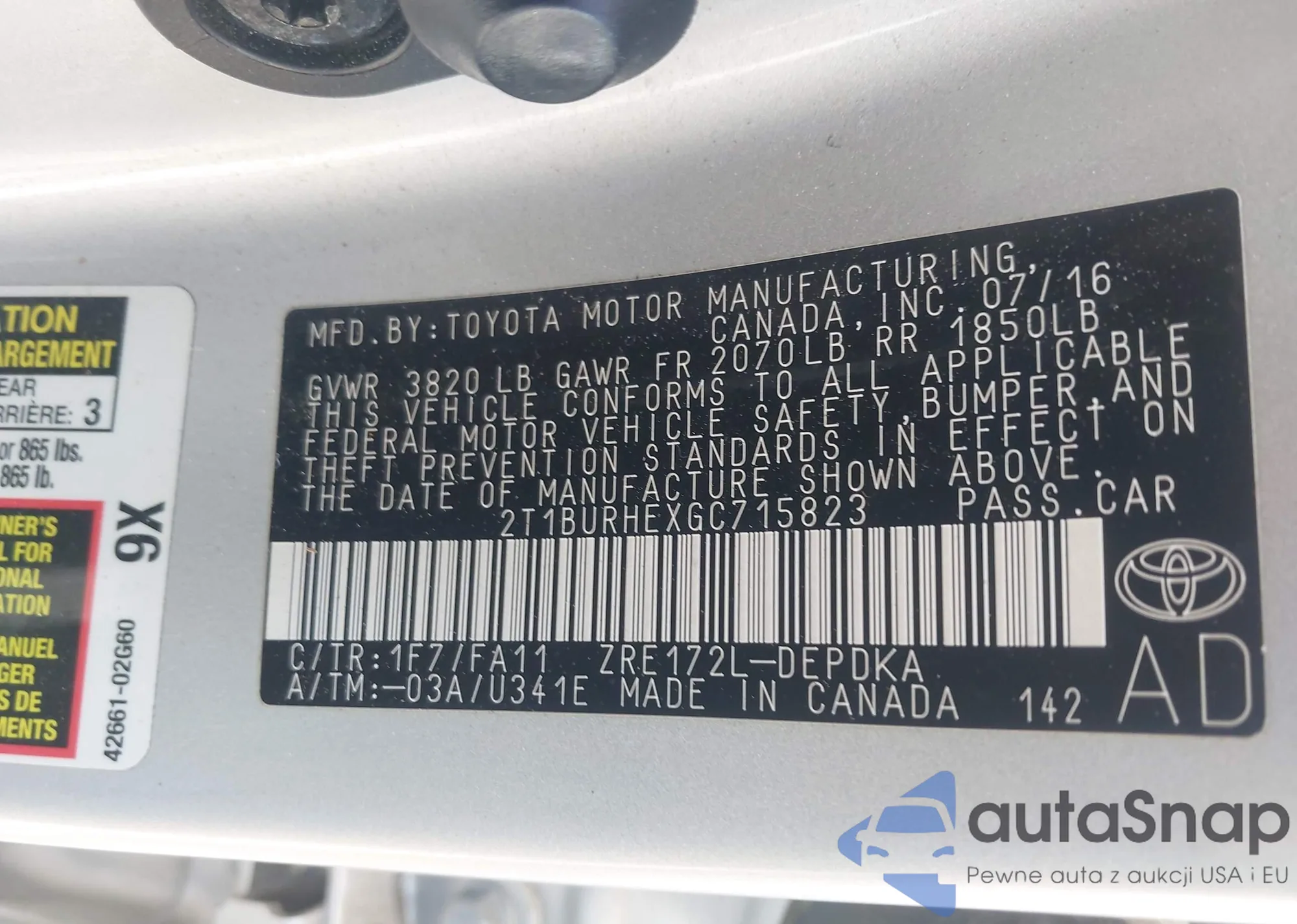 2016 Toyota Corolla L from USA, damaged, VIN 2T1BURHEXGC715823