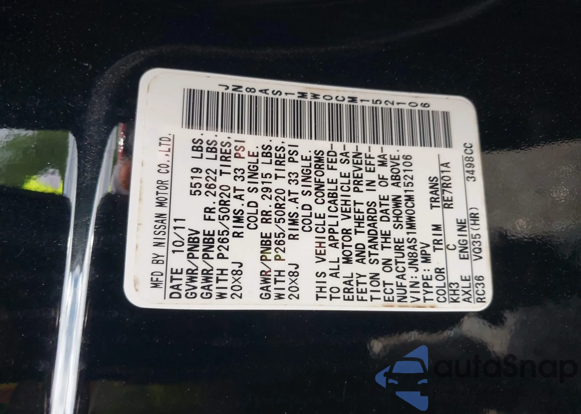• VIN JN8AS1MW0CM152106
